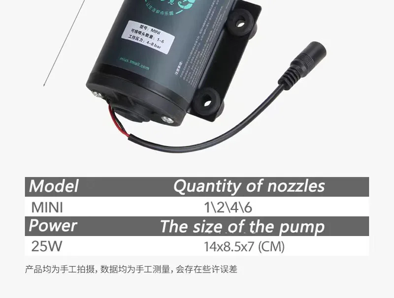 Внутренний слой: 1/4 дюйма (6,35 мм) Полиэтиленовая трубкаПоток: 120-160 мл/мин.Рабочее давление: 4-8 бар