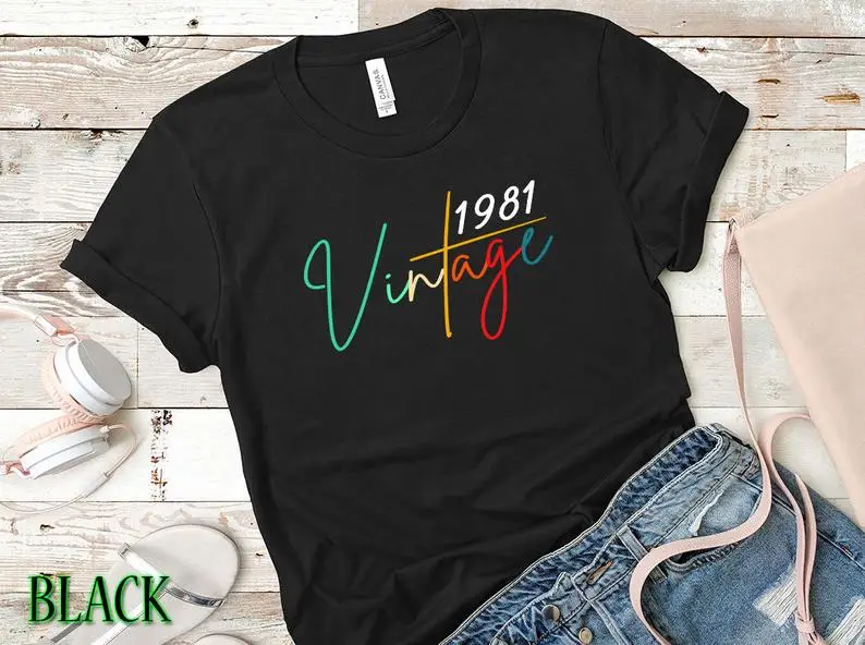 Винтажная рубашка 1981, рубашка на 40-й день рождения, женская одежда, женские футболки для женщин, летние футболки в стиле Харадзюку