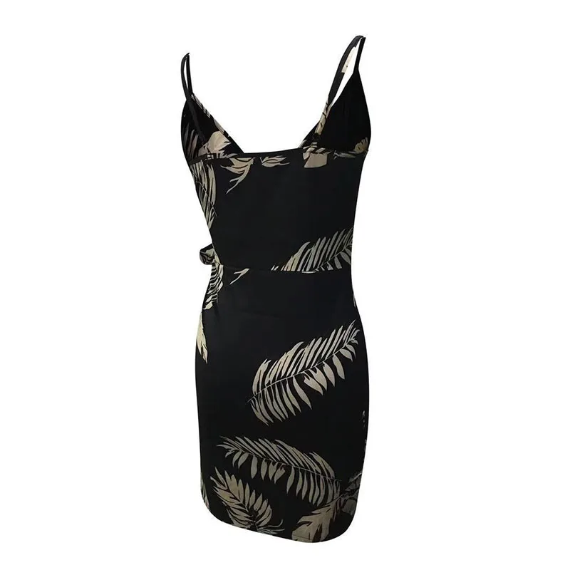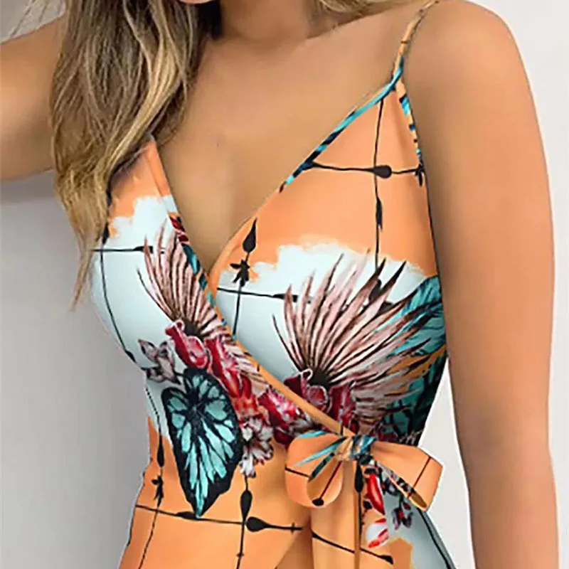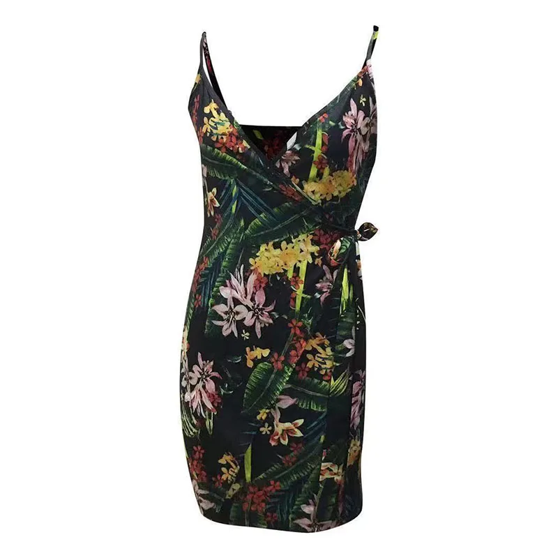 Женское повседневное летнее платье на тонких бретелях с цветочным принтом и V-образным вырезом
