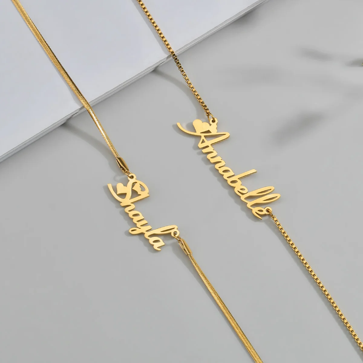 Ожерелье Atoztide с именем на заказ, цепочка из нержавеющей стали в коробке, ожерелье с именной табличкой и лезвием, персонализированные буквы для женщин, ювелирные изделия в подарок