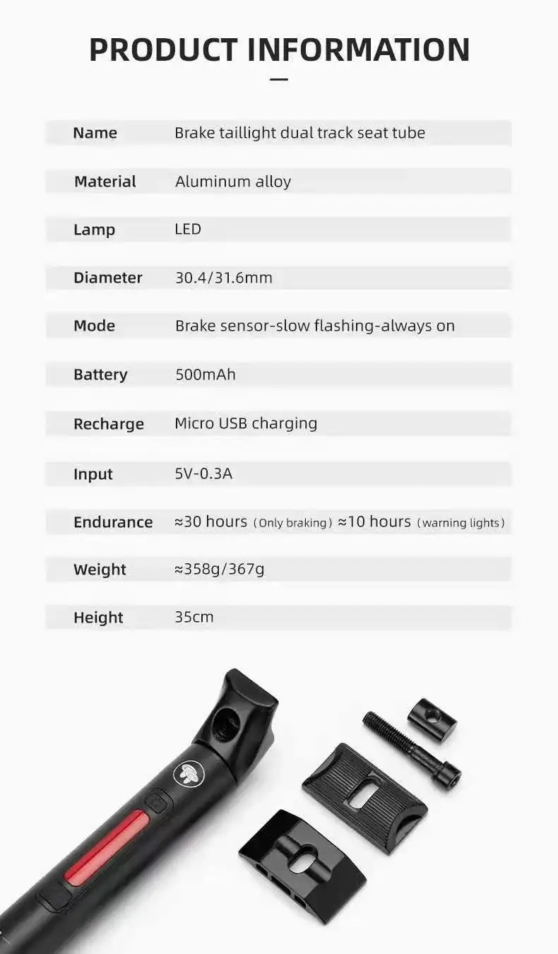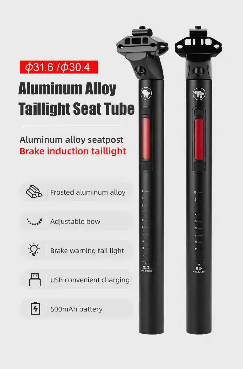 Новинка, подседельный штырь для велосипеда, 31,630,4 мм, алюминиевый Встроенный задний фонарь, подседельная труба для дорожного и горного велосипеда, аксессуары