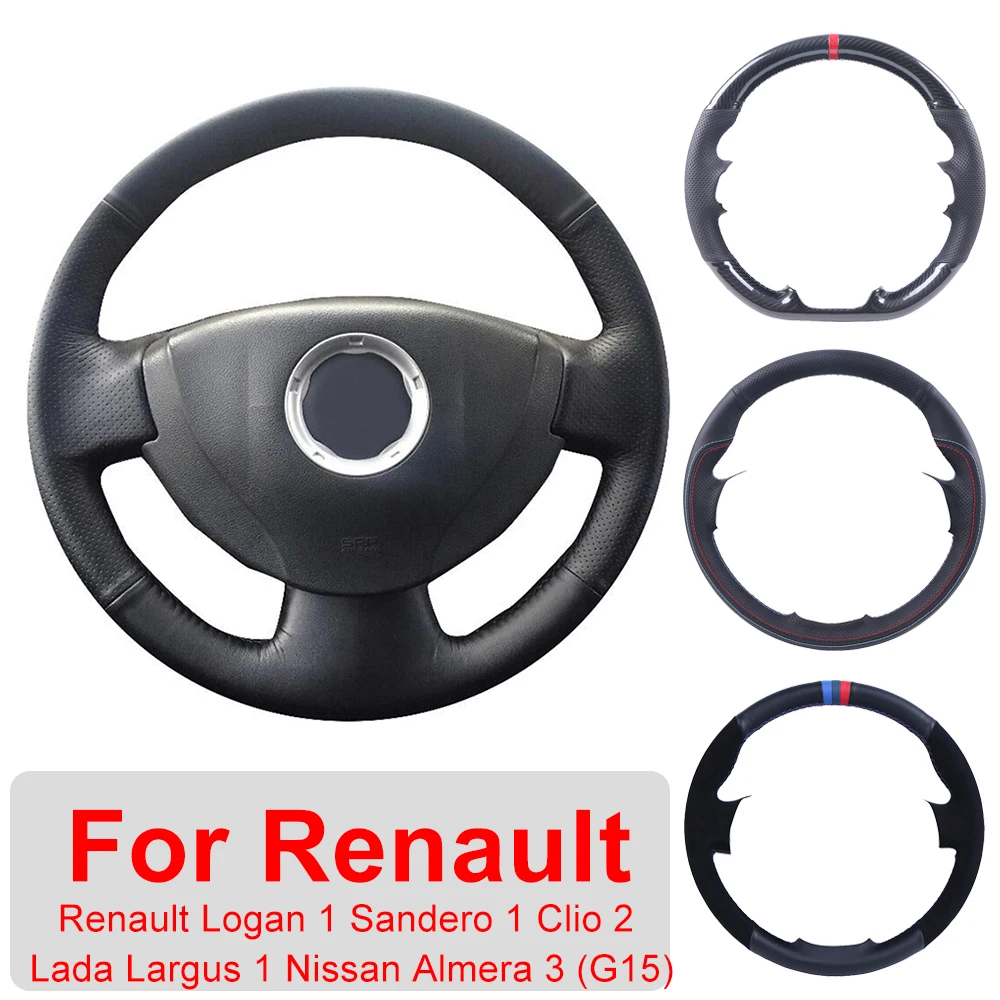 Ручное шитье по индивидуальному заказу чехол рулевого колеса автомобиля для Renault Logan1 Sandero 1 Clio 2 Lada Largus 1 Nissan Almera 3 (G15) кожа