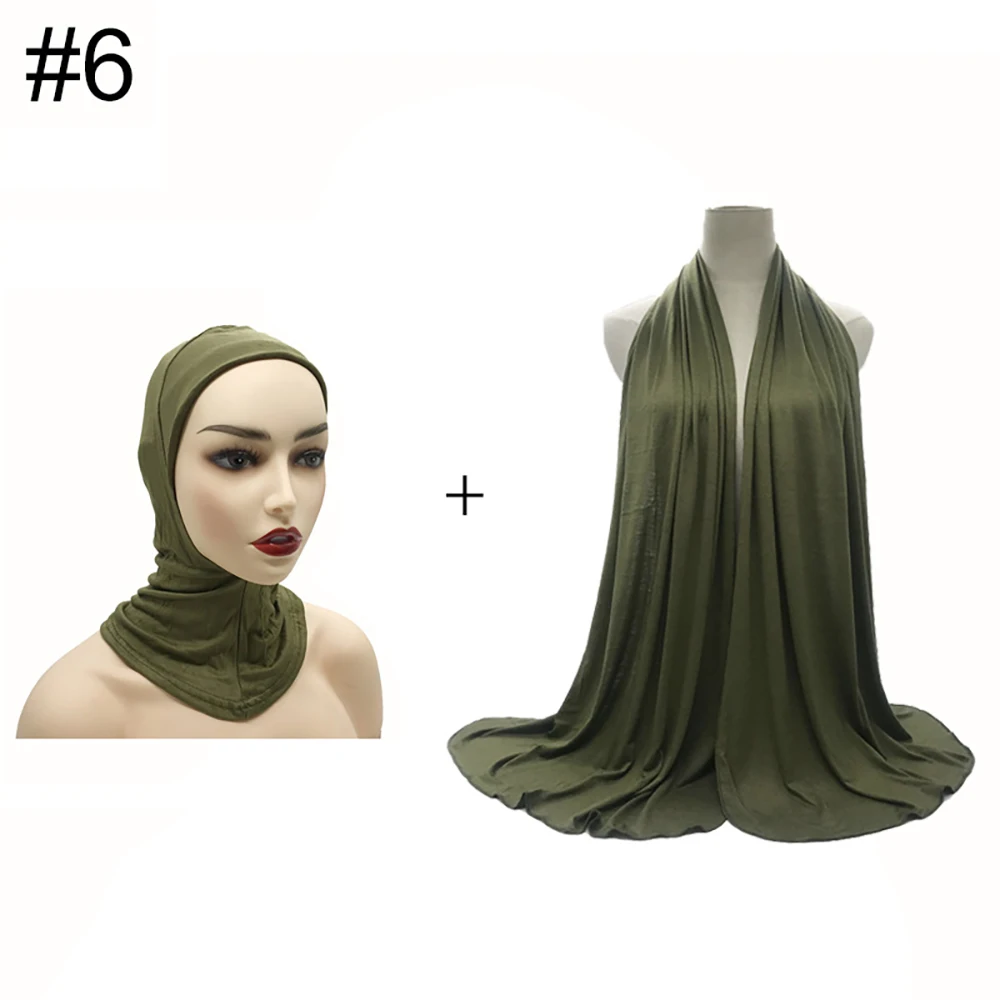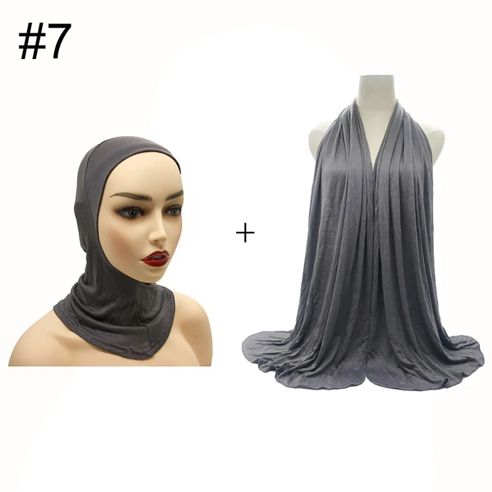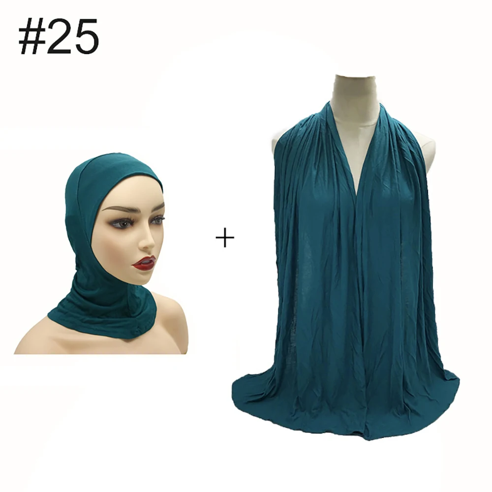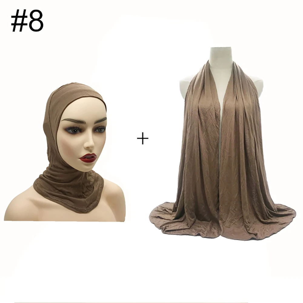 Hijab Джерси, комплект из 2 предметов, Женский тюрбан под шарф, хиджаб, шляпа, фата, капюшон из модала, мусульманские модные хиджабы
