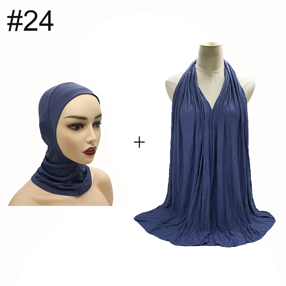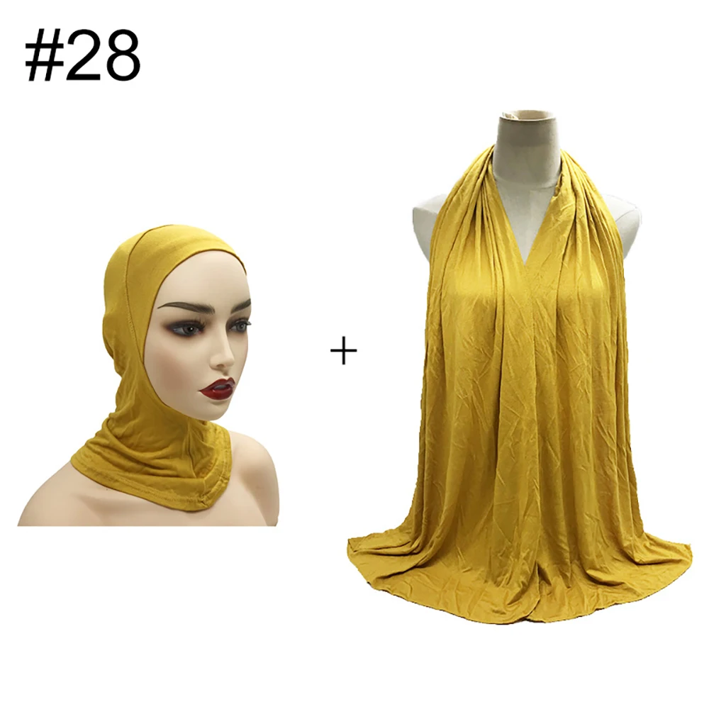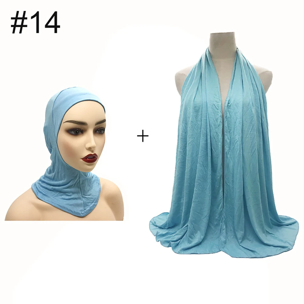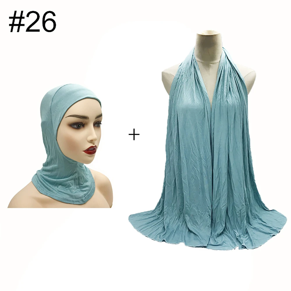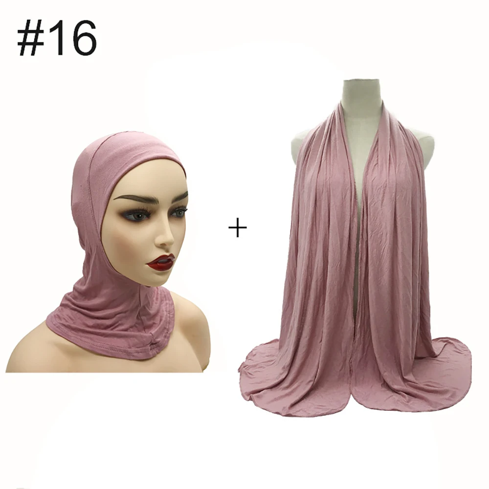 Hijab Джерси, комплект из 2 предметов, Женский тюрбан под шарф, хиджаб, шляпа, фата, капюшон из модала, мусульманские модные хиджабы