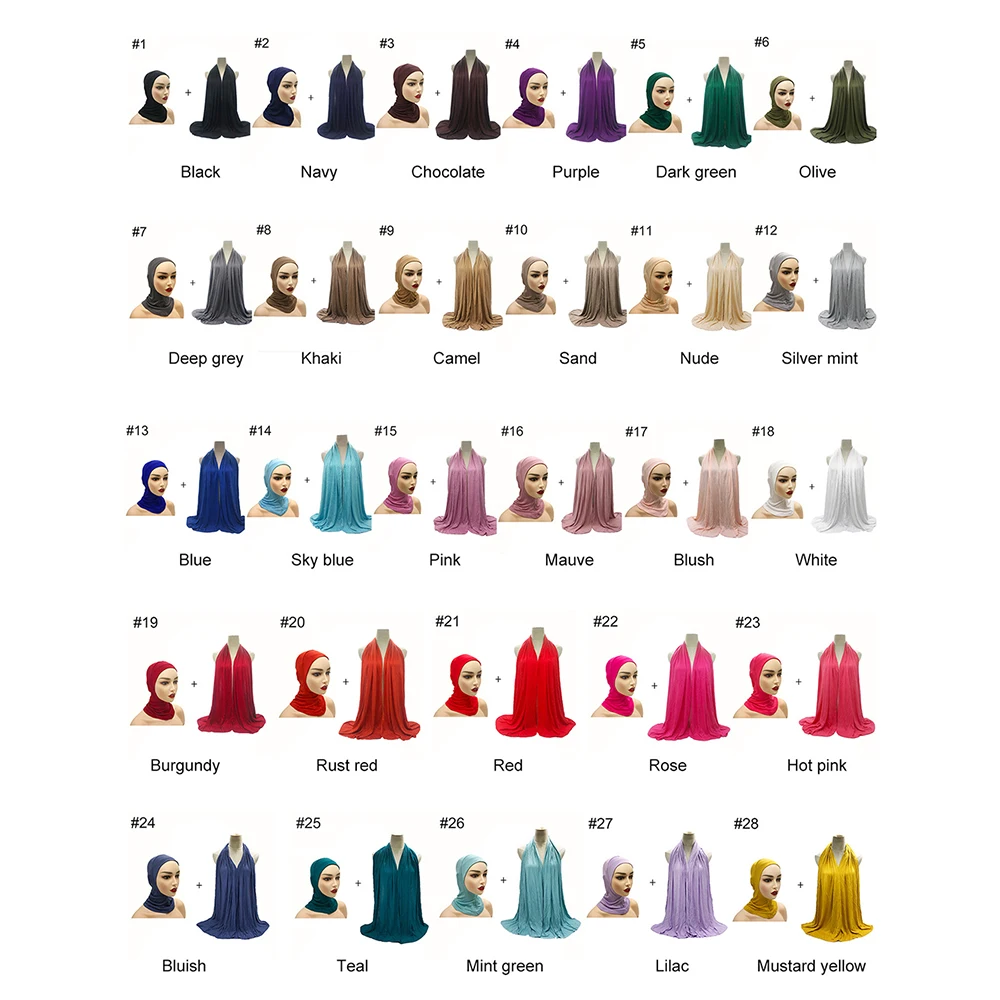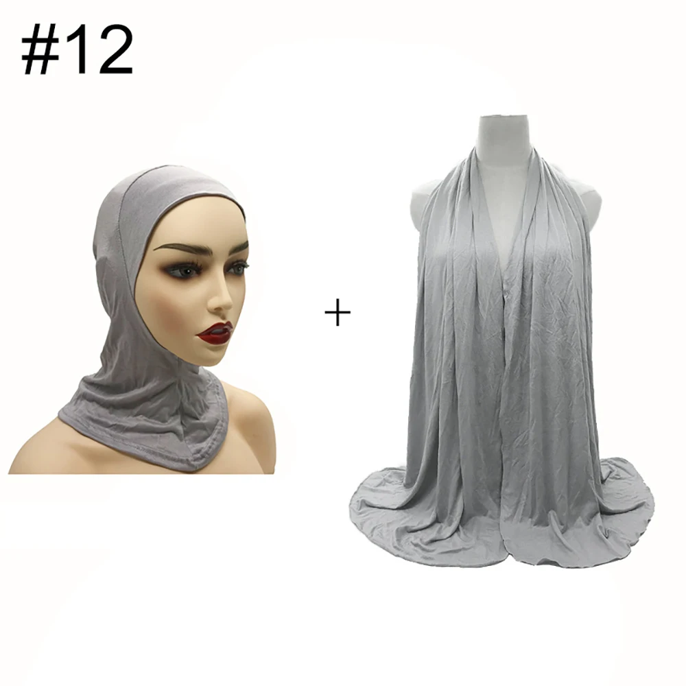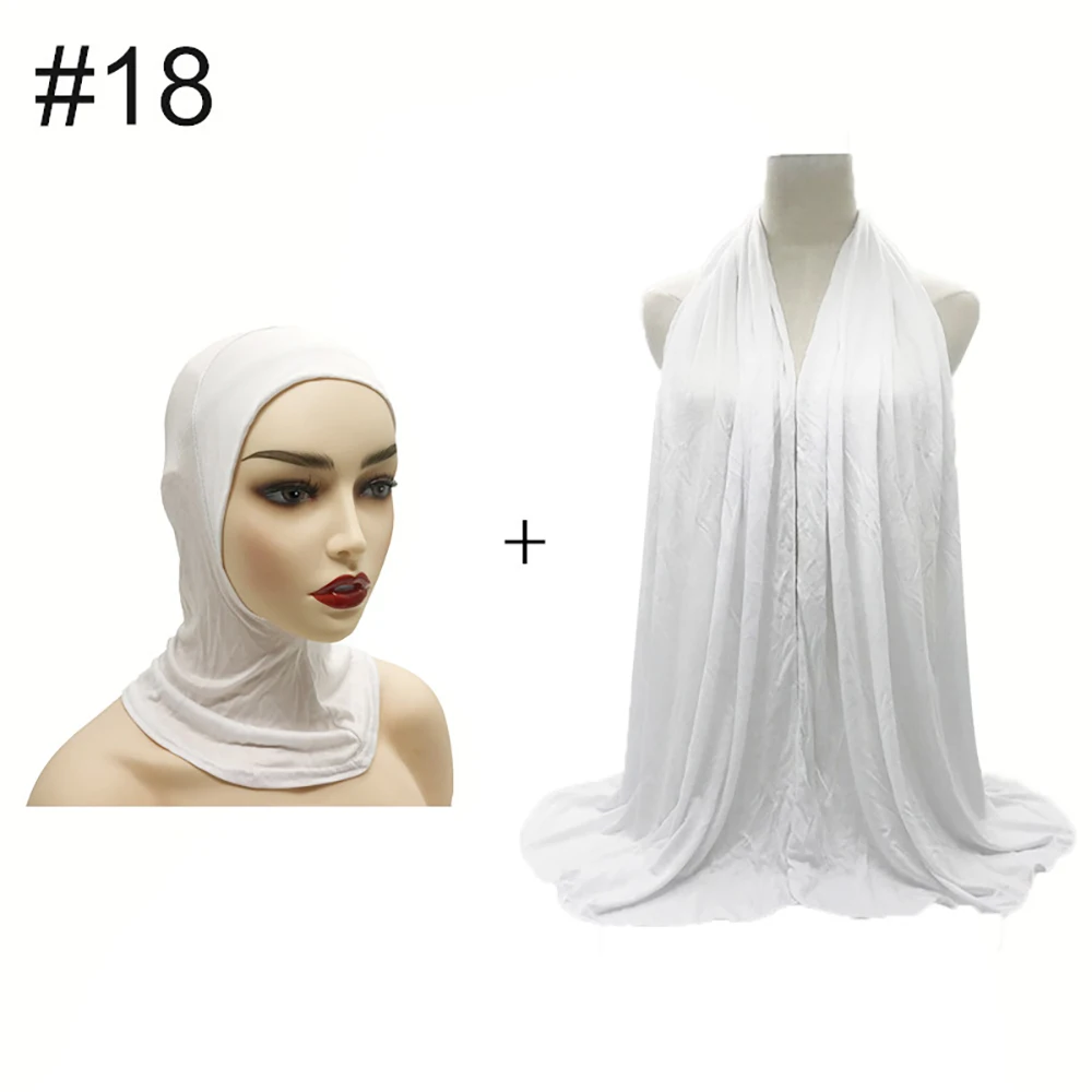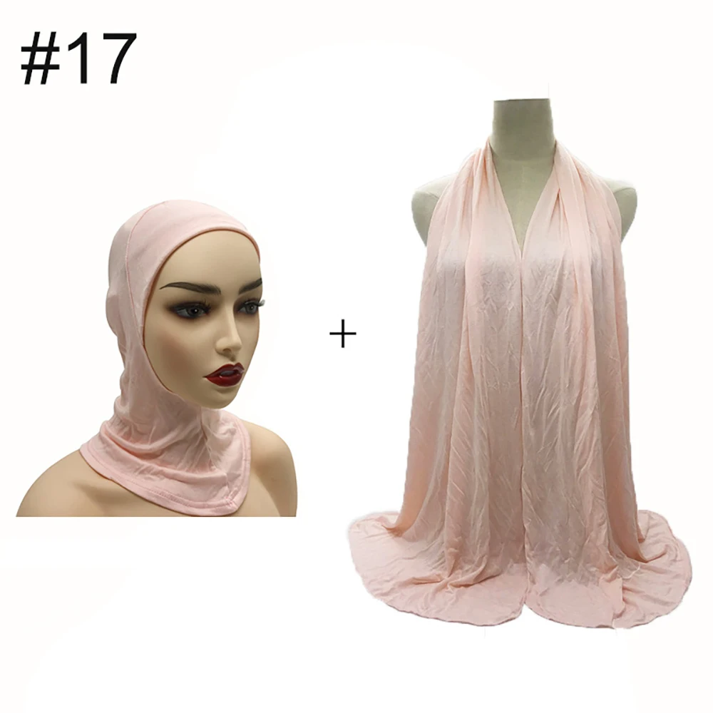 Hijab Джерси, комплект из 2 предметов, Женский тюрбан под шарф, хиджаб, шляпа, фата, капюшон из модала, мусульманские модные хиджабы