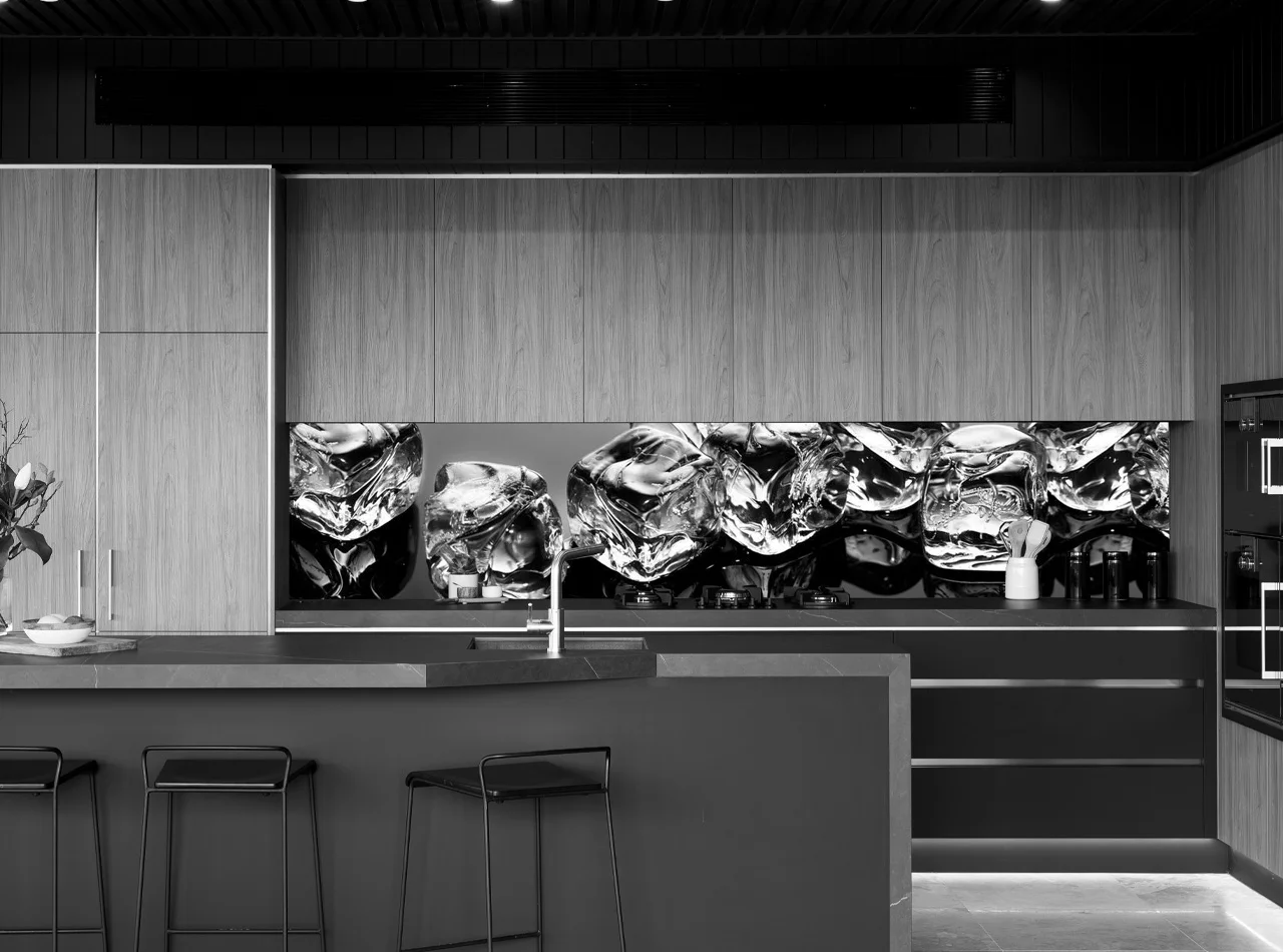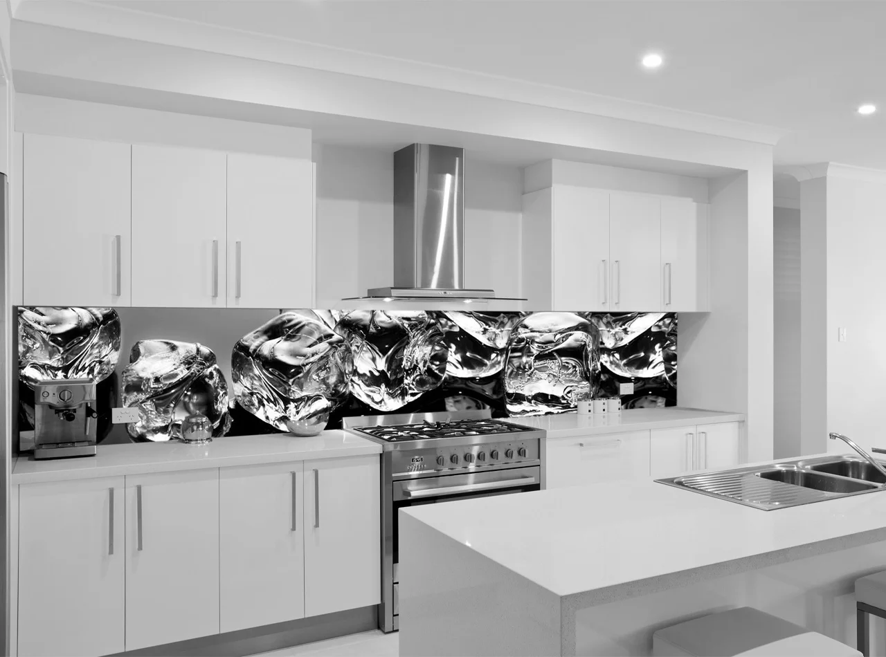 Фартук для кухни АБС пластик с фотопечатью Лед на черном идеально подходит для индукционных и электрических плит (выдерживает температуру нагрева до +80 градусов). Для газовых плит рекомендуем использовать прозрачное защитное стекло у варочной поверхности. Его также можно купить у нас!