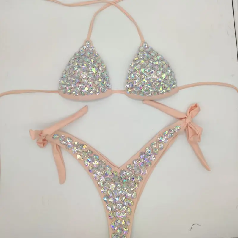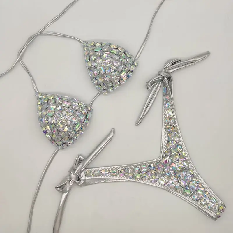 Новинка 2021, комплект бикини со стразами, купальник Стразы, купальник с кристаллами, сексуальное женское бикини, блестящая купальная одежда, женский купальник