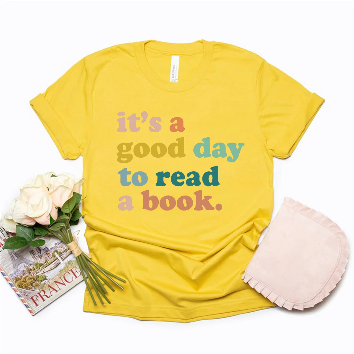 Это хороший день, чтобы читать книги, футболка, футболка для чтения, футболки для учителей, повседневные футболки унисекс, летние топы TX5315
