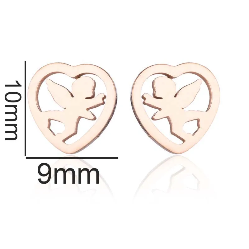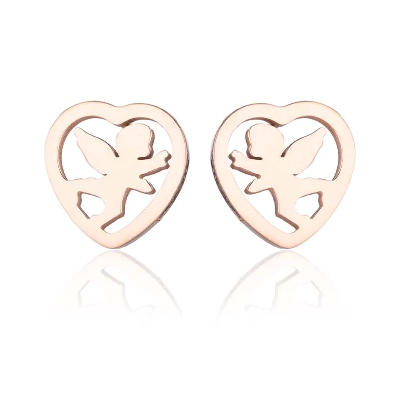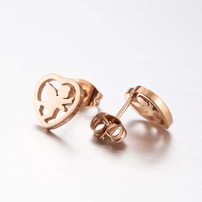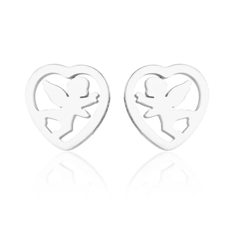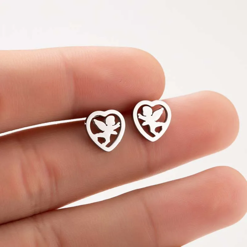 Женские серьги-гвоздики из нержавеющей стали в виде сердца и ангела
