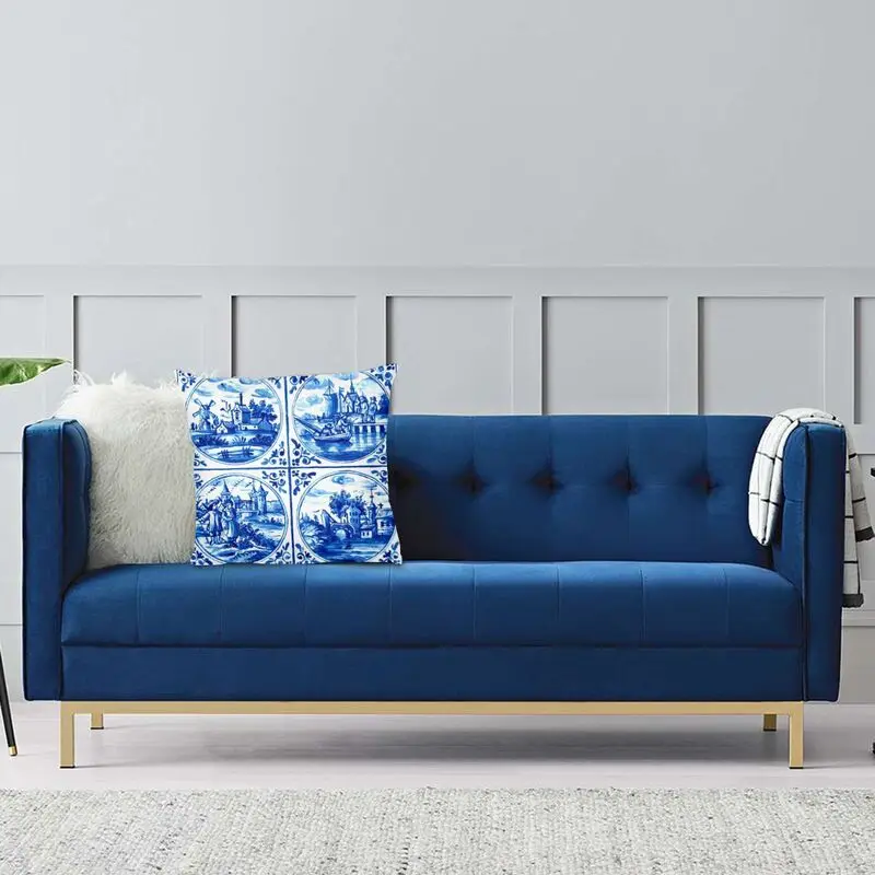 Голландская голубая наволочка для подушки Delft, винтажная наволочка с изображением парусника, ветряных мельниц, наволочка для пола, автомобильная модная наволочка для подушки, домашний декор