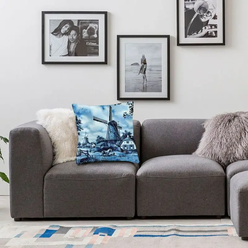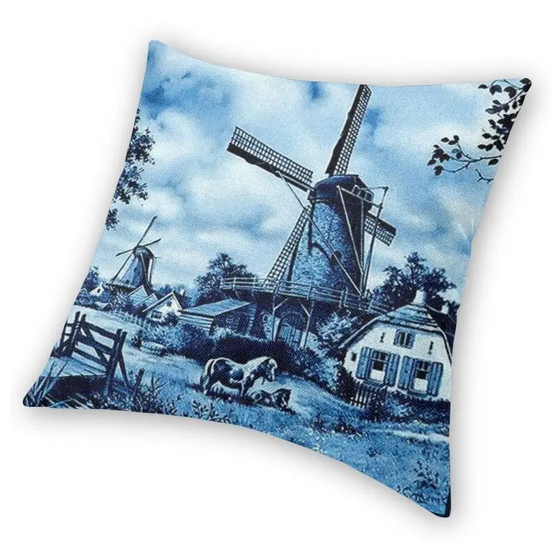 Голландская синяя винтажная ветряная мельница Delft, искусственная ферма, украшение, 3D печать, Ландшафтная декоративная подушка для автомобиля, двусторонняя