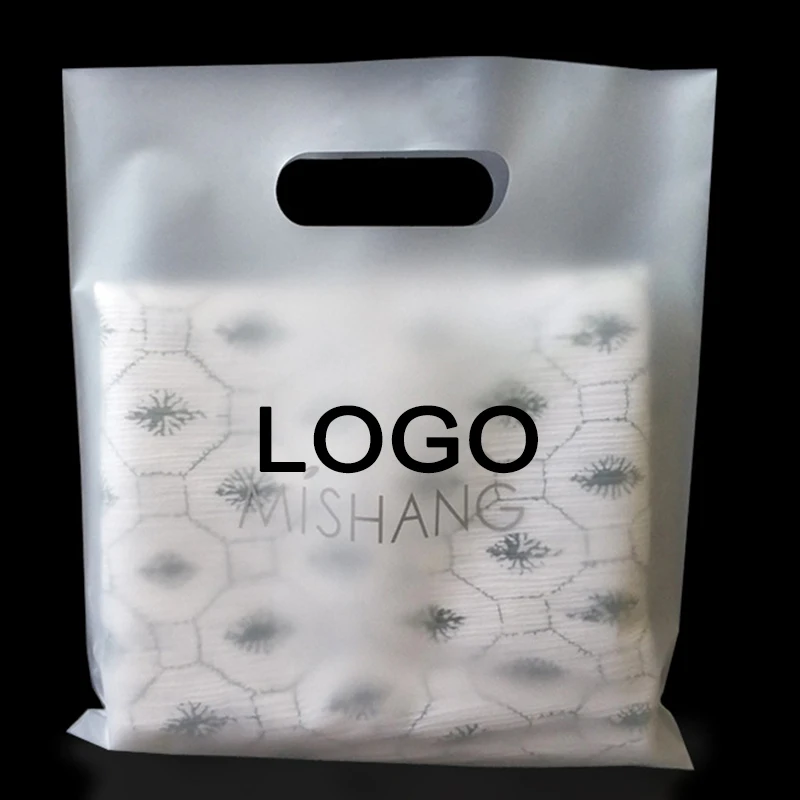 20 шт., Пользовательский логотип прозрачные матовые косметички CPE для делового подарка, упаковка для одежды с ручкой-петлей, сумки для хранения покупок