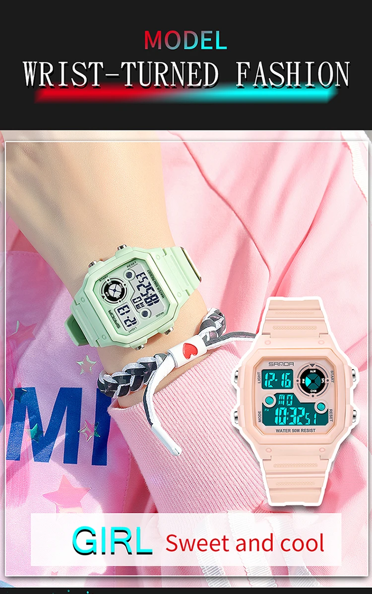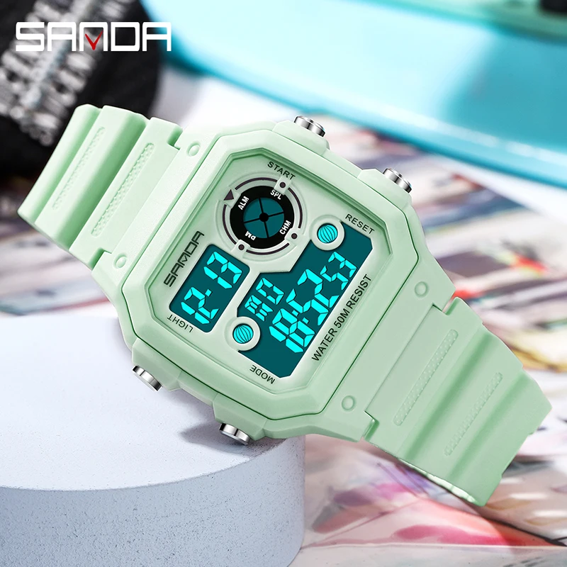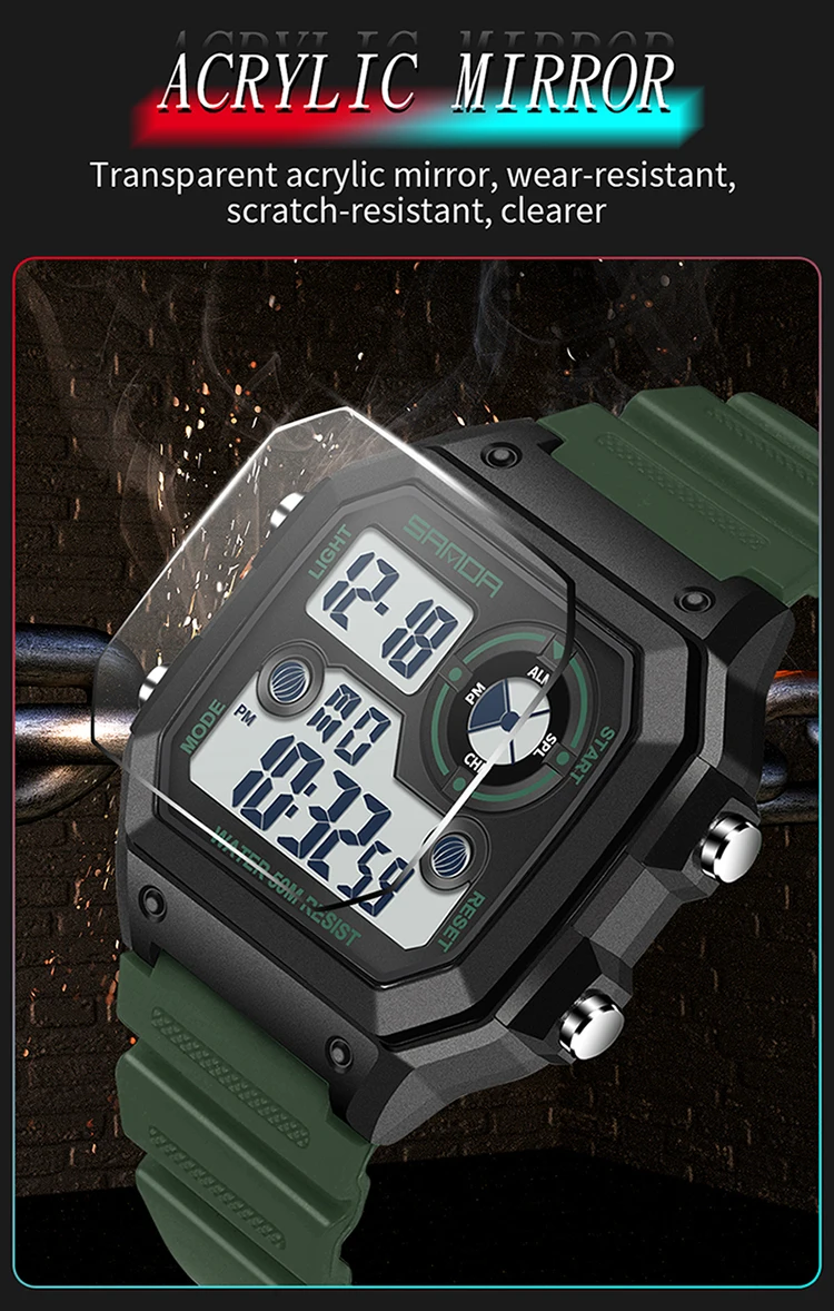 Часы SANDA плавательные часы мужские спортивные, модные водонепроницаемые светодиодные цифровые в стиле милитари, с обратным отсчётом
