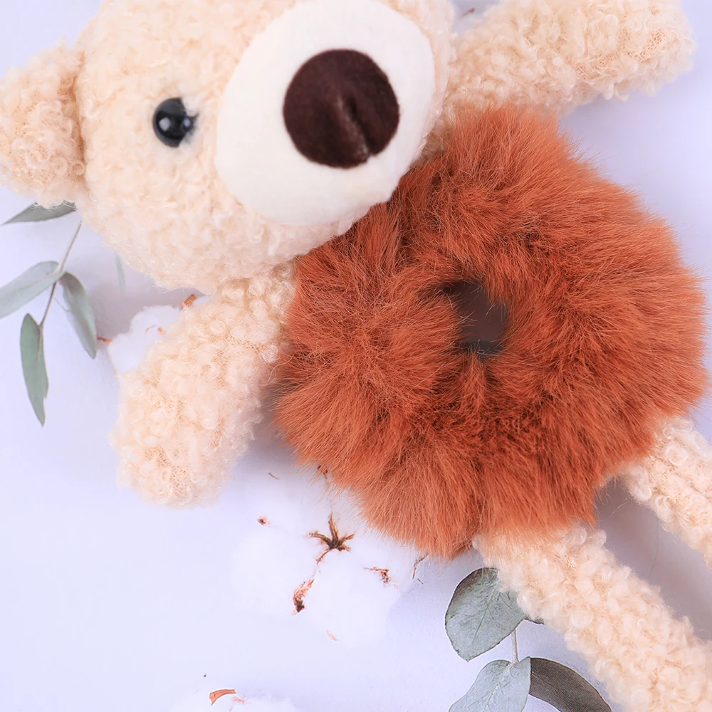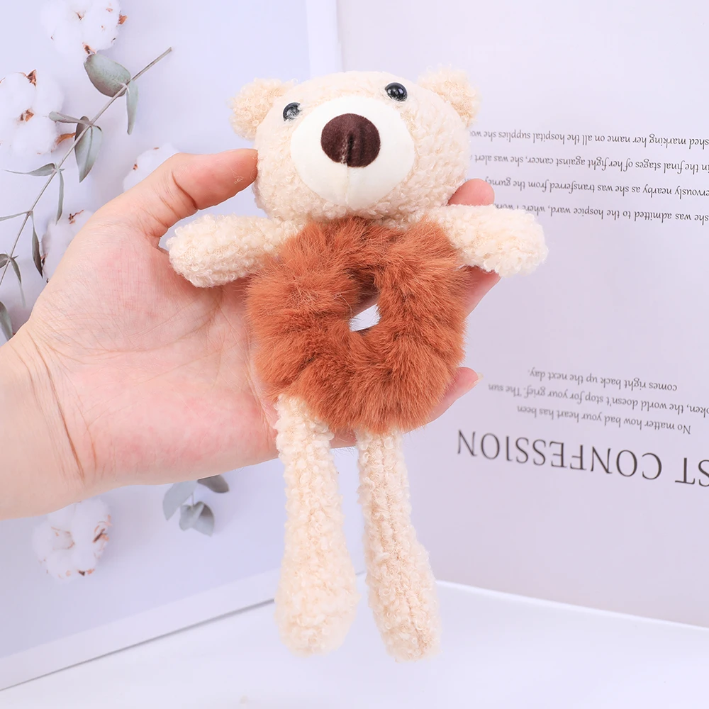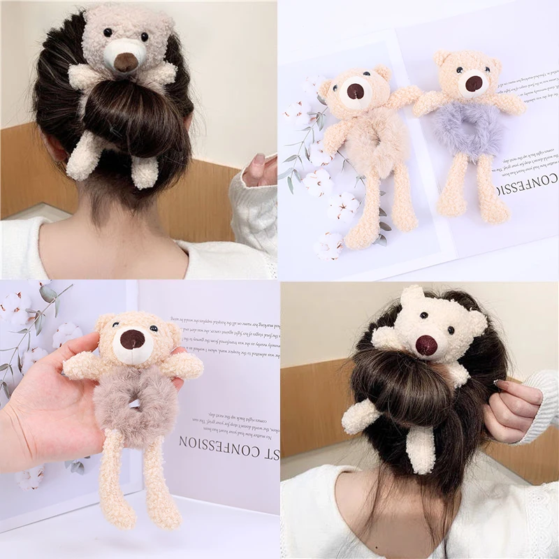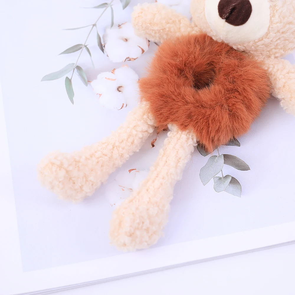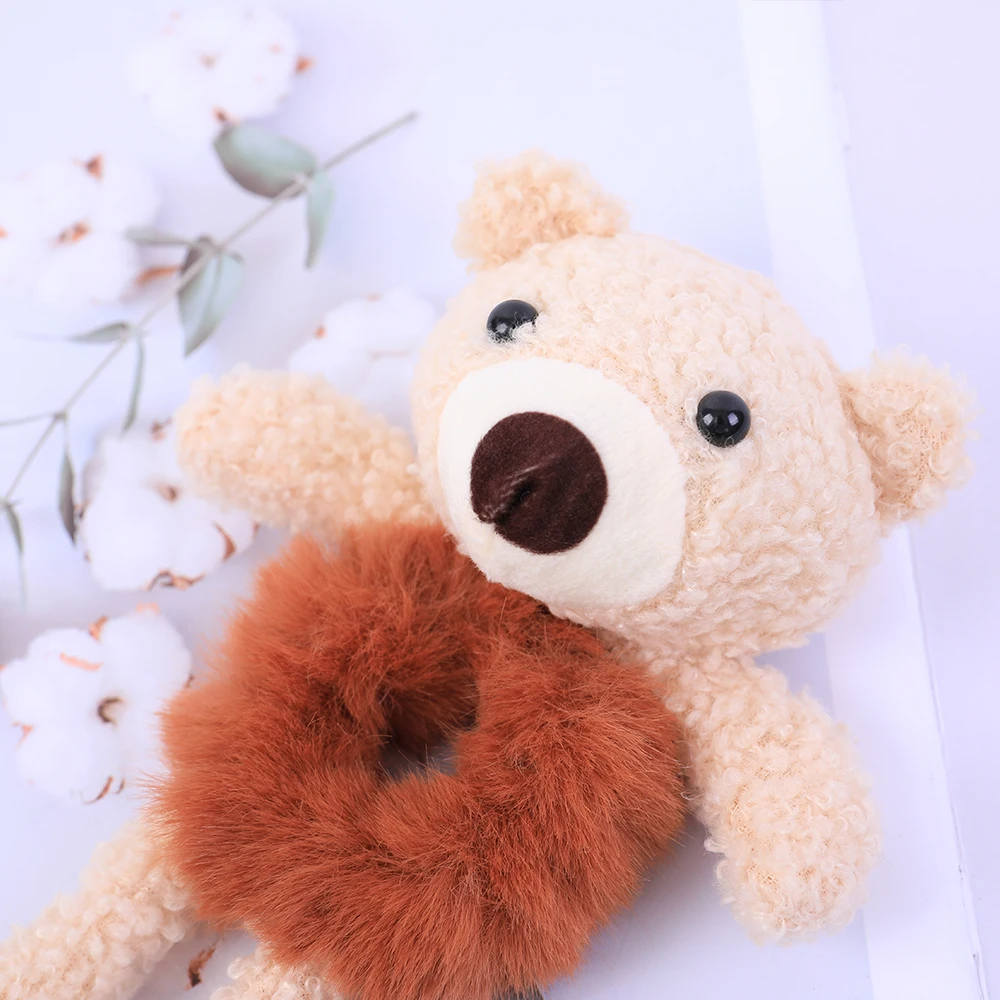 Женские резинки из искусственного меха с шариками, милые Мультяшные 3D резинки для волос с медведем, эластичные резинки для волос, завязки, держатель для конского хвоста, аксессуары для волос для девочек