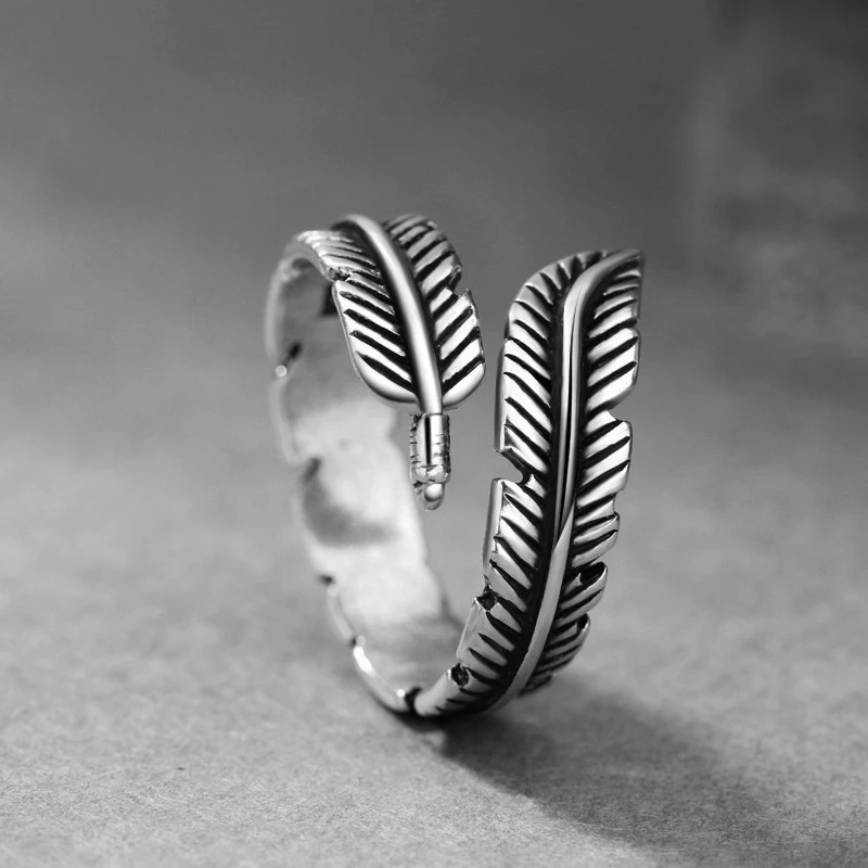 Серебряное Открытое кольцо с перьями, регулируемое кольцо в стиле хип-хоп, Модная бижутерия, лучший подарок, винтажные старинные панковские обручальные кольца для женщин