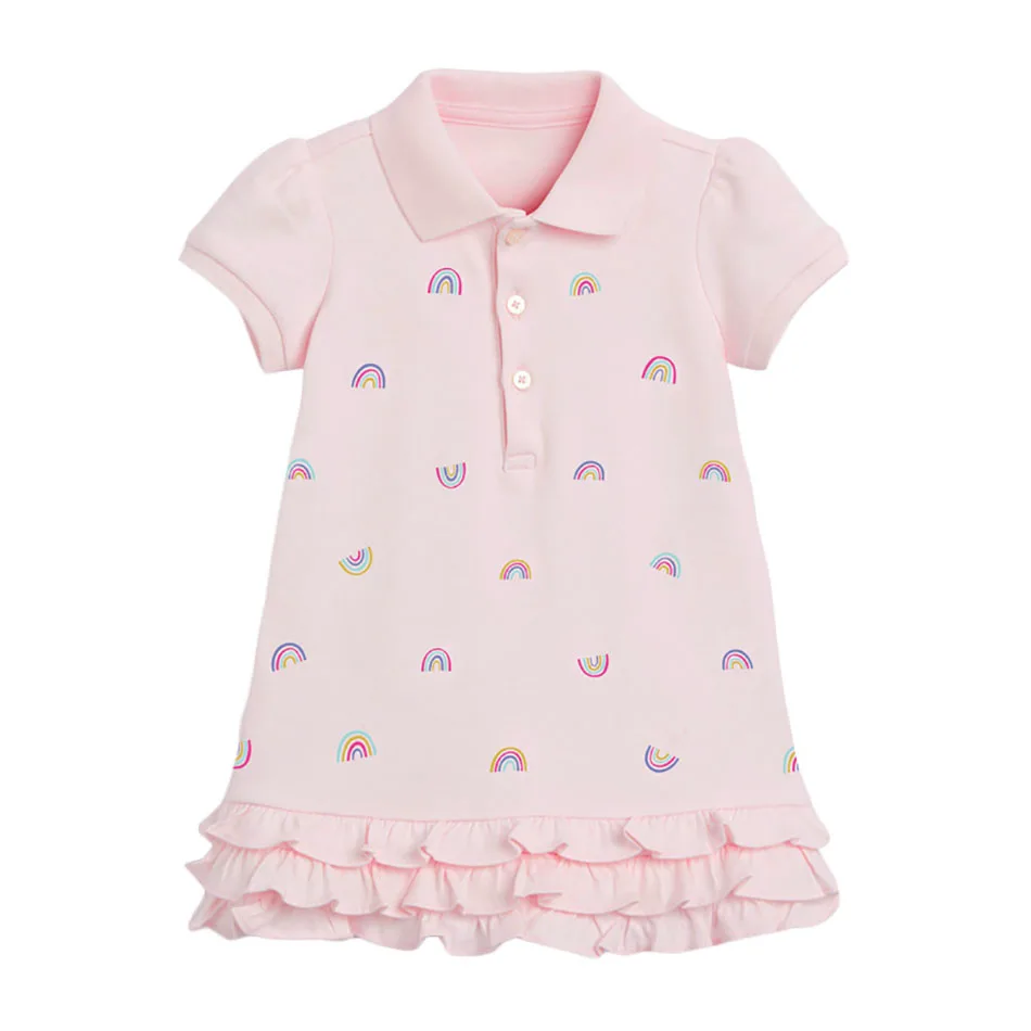 Детское Хлопковое платье-поло, с коротким рукавом и воротником-стойкой