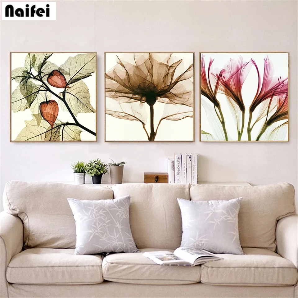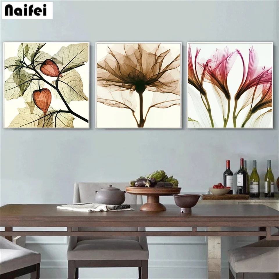 Набор для алмазной живописи "сделай сам", 3 панели, квадратные круглые стразы с изображением цветов, алмазная вышивка растения, мозаика, настенное украшение для дома