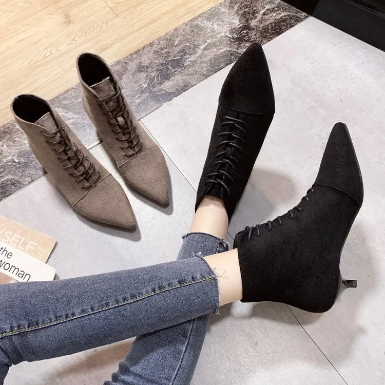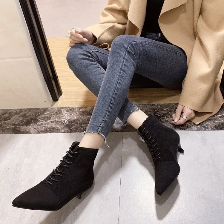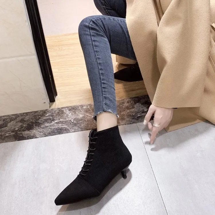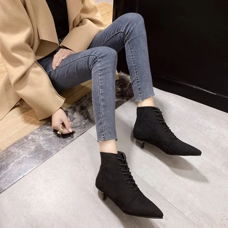 Женские универсальные короткие ботинки на шпильке, с острым носком, на веснуОсеньзиму, 2021