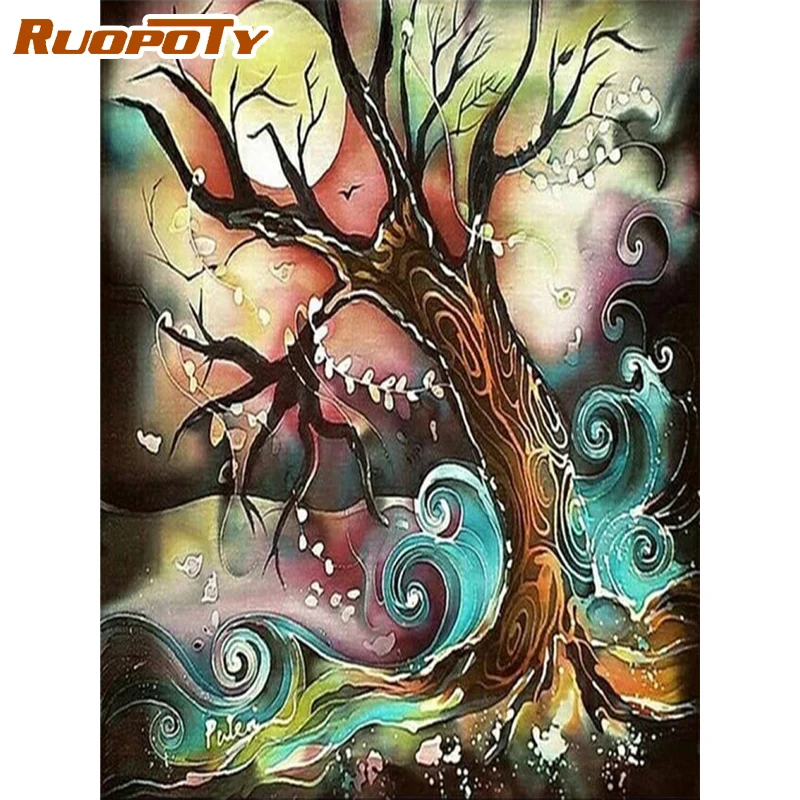 Алмазная живопись RUOPOTY, абстрактная вышивка крестиком с деревом, полная квадратная круглая Алмазная вышивка, пейзаж стразы, картины, домашнее искусство