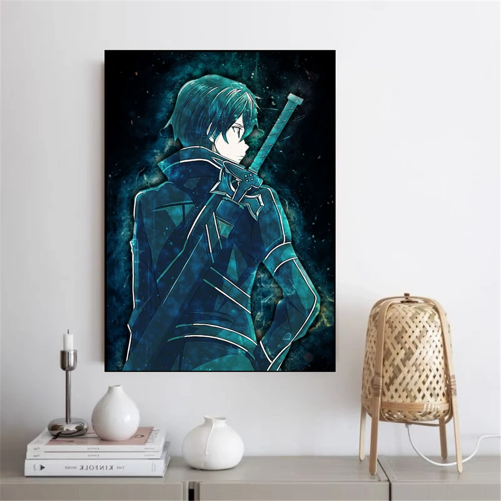Японское аниме меч искусство онлайн плакат современный декор домашняя анимация холст живопись классические игры настенное Искусство Декор бара комнаты