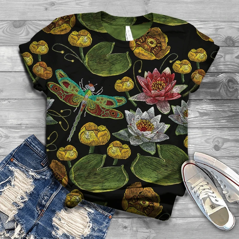 Женская футболка с 3D-принтом стрекозы, Повседневная футболка с круглым вырезом и коротким рукавом, в стиле хип-хоп, лето 2021