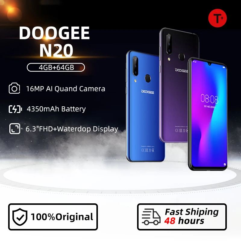 Смартфон DOOGEE N20, экран 6,3 дюйма FHD +, тройная Основная камера 16 Мп, 64 ГБ + 4 Гб, Восьмиядерный процессор, 4350 мА ч, LTE