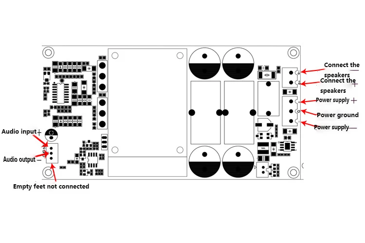 Примечание для друзей, которые покупают усилители мощности: в соответствии с формулой мощности P = U * U/R = напряжение * Напряжение/нагрузка, мощность определяется напряжением и нагрузкой. Чем выше напряжение и чем ниже нагрузка, тем выше мощность. Диапазон напряжения платы относится к этому диапазону напряжения, который может нормально работать. Не все напряжения и мощности нагрузки так же высоки, как отмечены. Например, 12V источника питания 4 Ом нагрузки, максимальная мощность составляет 15 Вт, 8 Ом мощность максимальная 7,5 Вт; 24V источника питания 4 Ом, максимальная мощность 50 Вт, И максимальная мощность 25 Вт при 8 Ом; В любое время, Источник питания должен быть больше, чем мощность усилителя, в противном случае громкий громкость не будет двигаться, мощность будет уменьшена, и звук будет прерван, И соответствующая выходная мощность не будет достигнута.