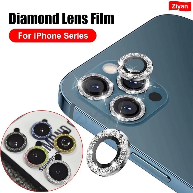 Блестящий Алмазный протектор объектива камеры для iPhone 13 Pro Max металлическое кольцо Объектив Закаленное стекло пленка для iPhone 11 Pro Max 12Mini крышка