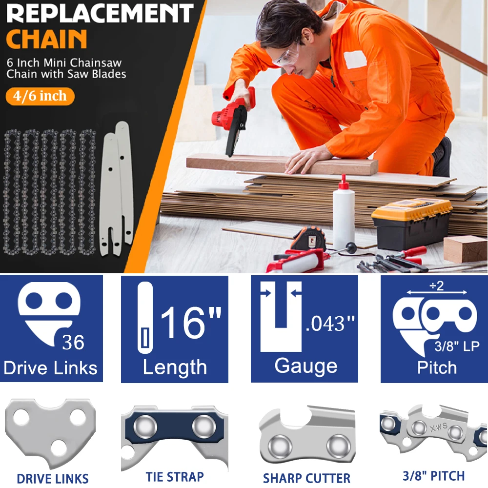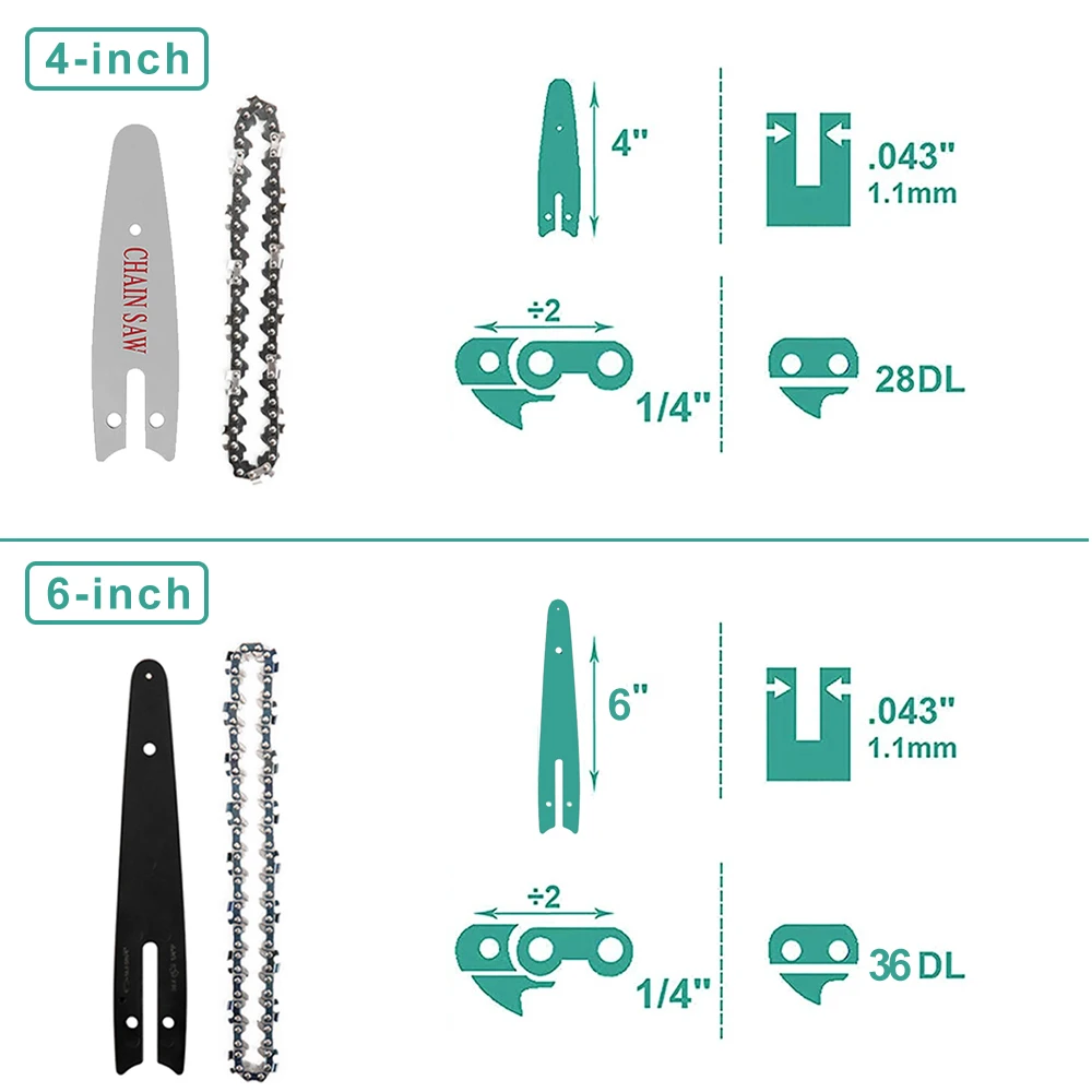 46-дюймовая цепь и направляющая пластина Набор мини-бензопилы Замена Аккумуляторная электрическая цепь пилы Резка ветвей по дереву Острые цепи