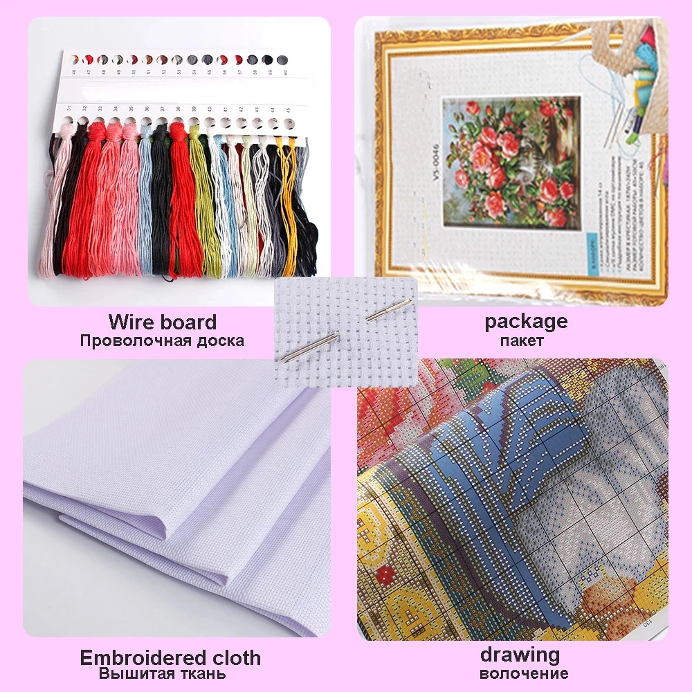 Доставка: вышивка ниитью, цвет для вышивания, игла, чертеж(Без внешней рамы)