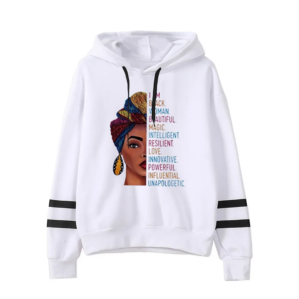 Новые забавные толстовки с капюшоном Я сильная меланин, женская одежда, Черная Женская толстовка с капюшоном в стиле фильма История месяца Африканской девушки