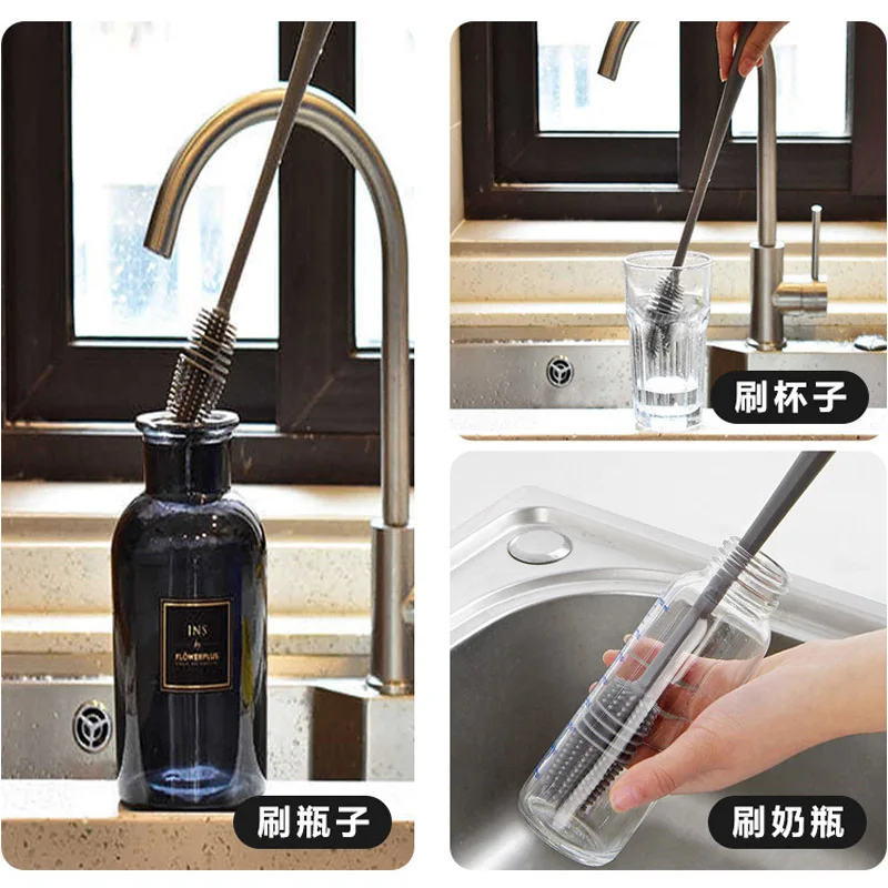 Силиконовая щетка для бутылки с длинной ручкой, гибкий портативный ...
