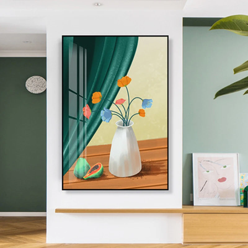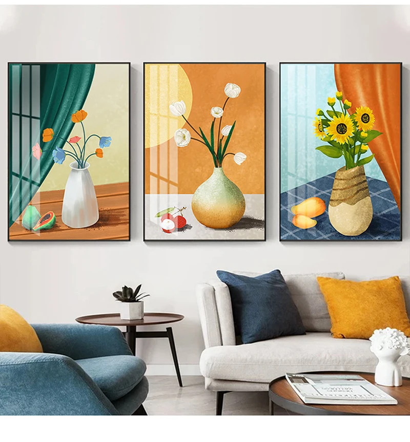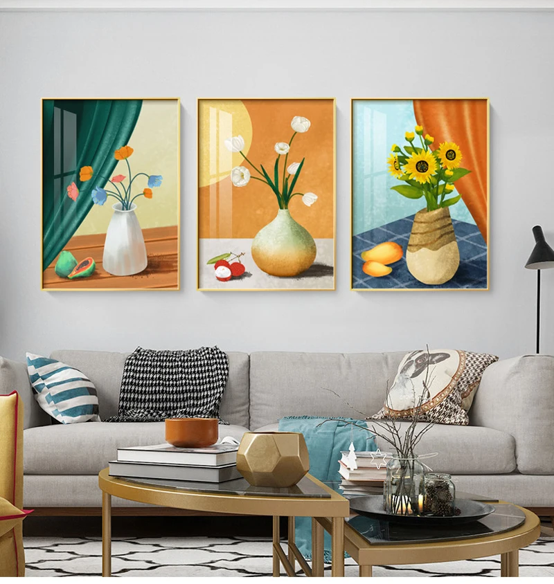 Название продукта: скандинавский настенный светильник для гостиной, декоративная живопись, роскошная маленькая свежая ваза с растением подсолнуха, тройной диван, абстрактные плакаты