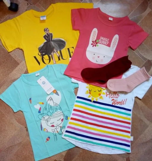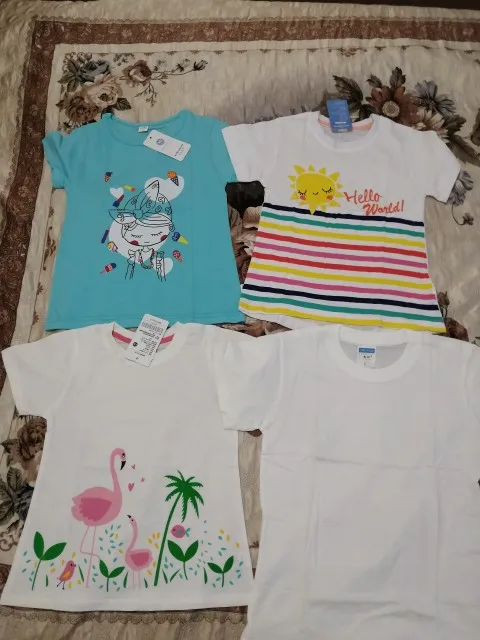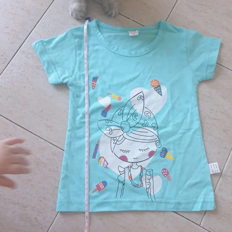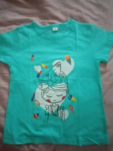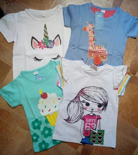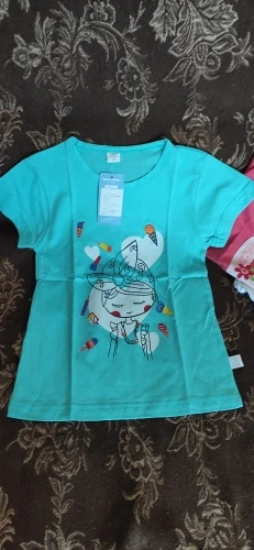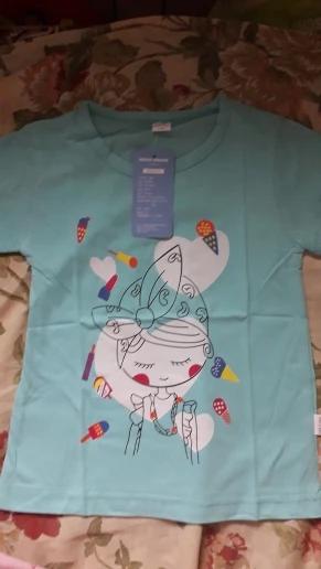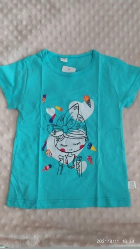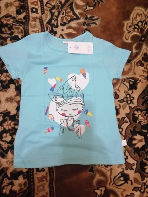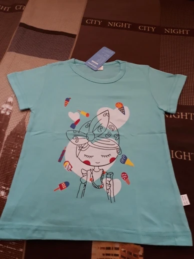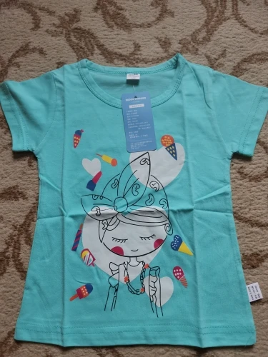 Купила футболочку за 75 рублей, отличная цена. Набрала три штуки разных цветов. Дочка теперь очень довольна. На 6 лет подошла хорошо на рост 128 и вес 24 кг. Пришла за 11 дней на почту. Цвета такие же яркие, как и на фото продавца.