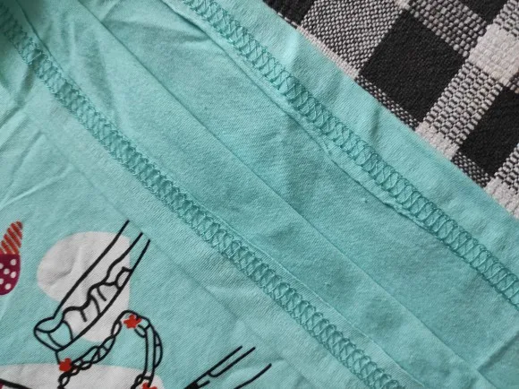 Очень хороший. Ткань хлопок. Нитки нигде не торчат. Рисунок напечатан. Заказала за 75₽