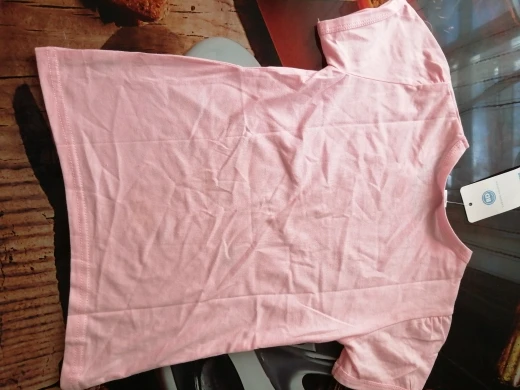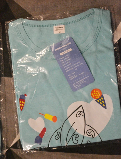 Покупала за 150 руб. Футболка вся кривая, единственное, что радует - хб. Маломерит, ребёнок 5 лет, 116 см, 21 кг носить только сейчас, а предполагалось на вырост.