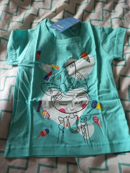 Футболочки не мятные, голубые с пироженкой и девочкой одинаковые. За 75₽ отл