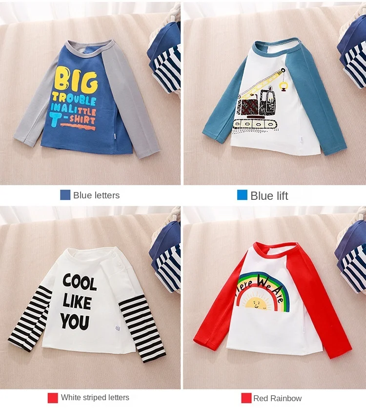 Футболка хлопковая осенняя, для мальчиков и девочек 3-8 лет