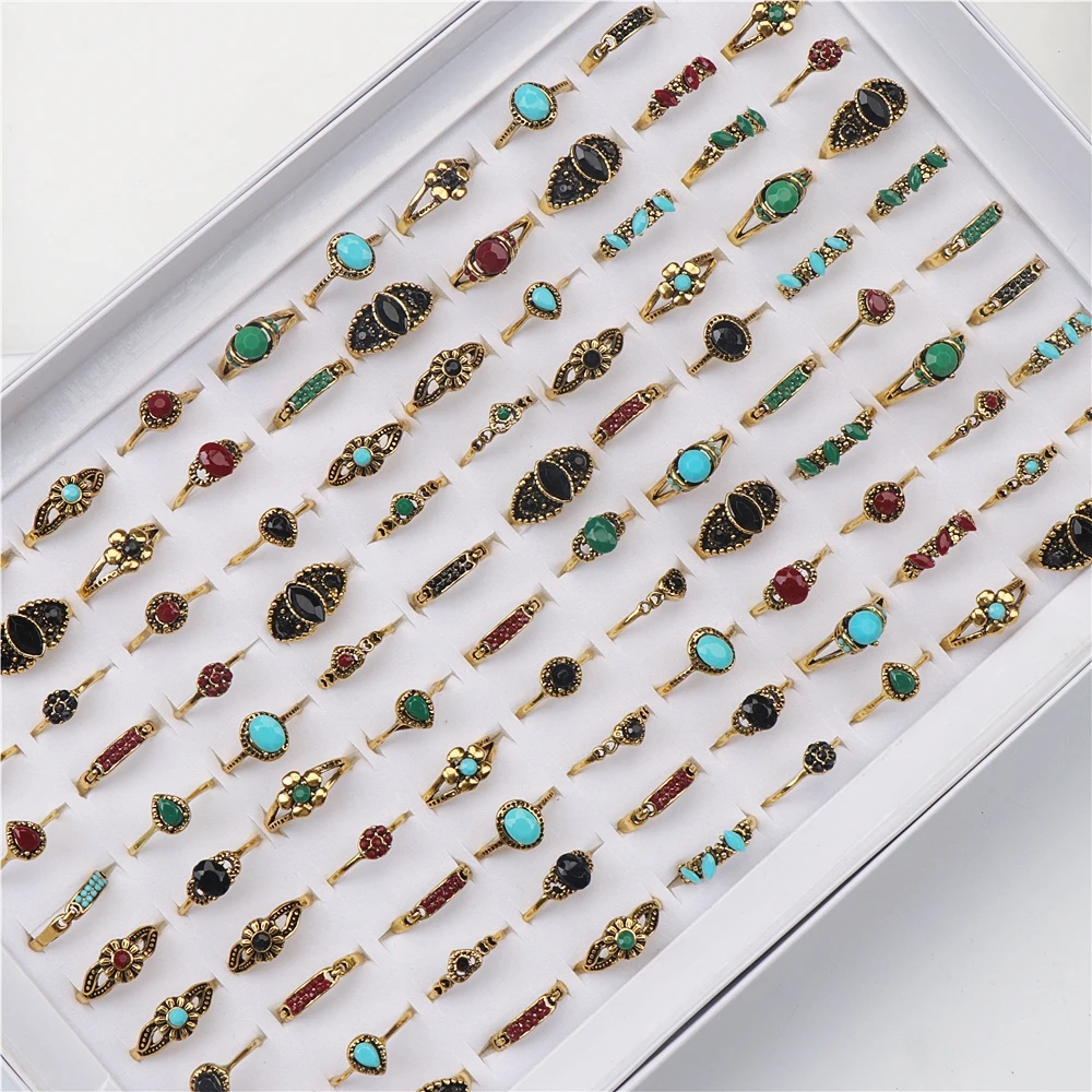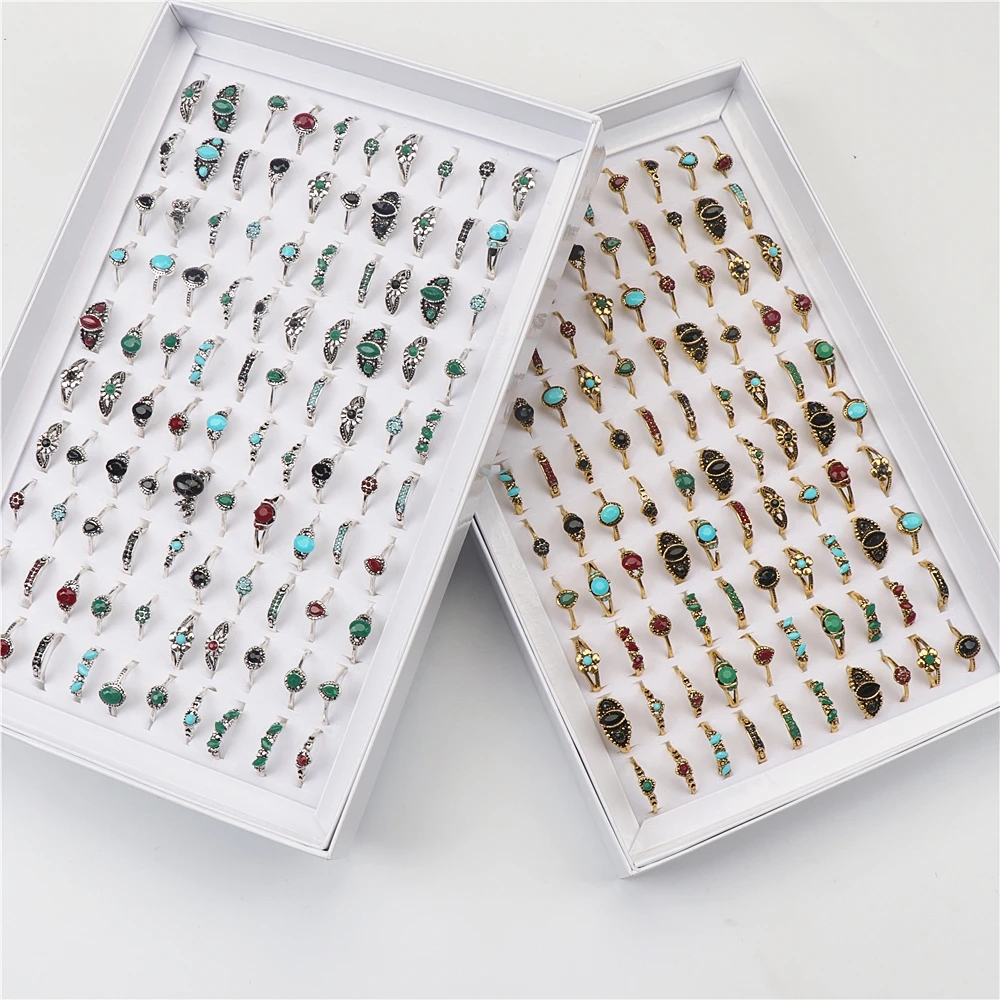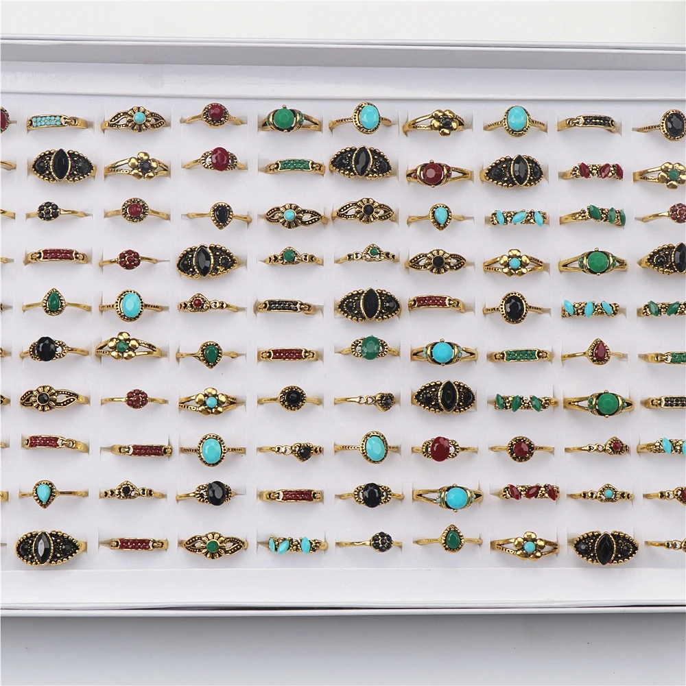 100 шт.лот богемные винтажные Позолоченные посеребренные перстни дл...