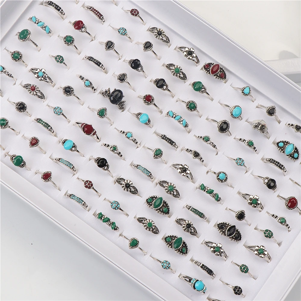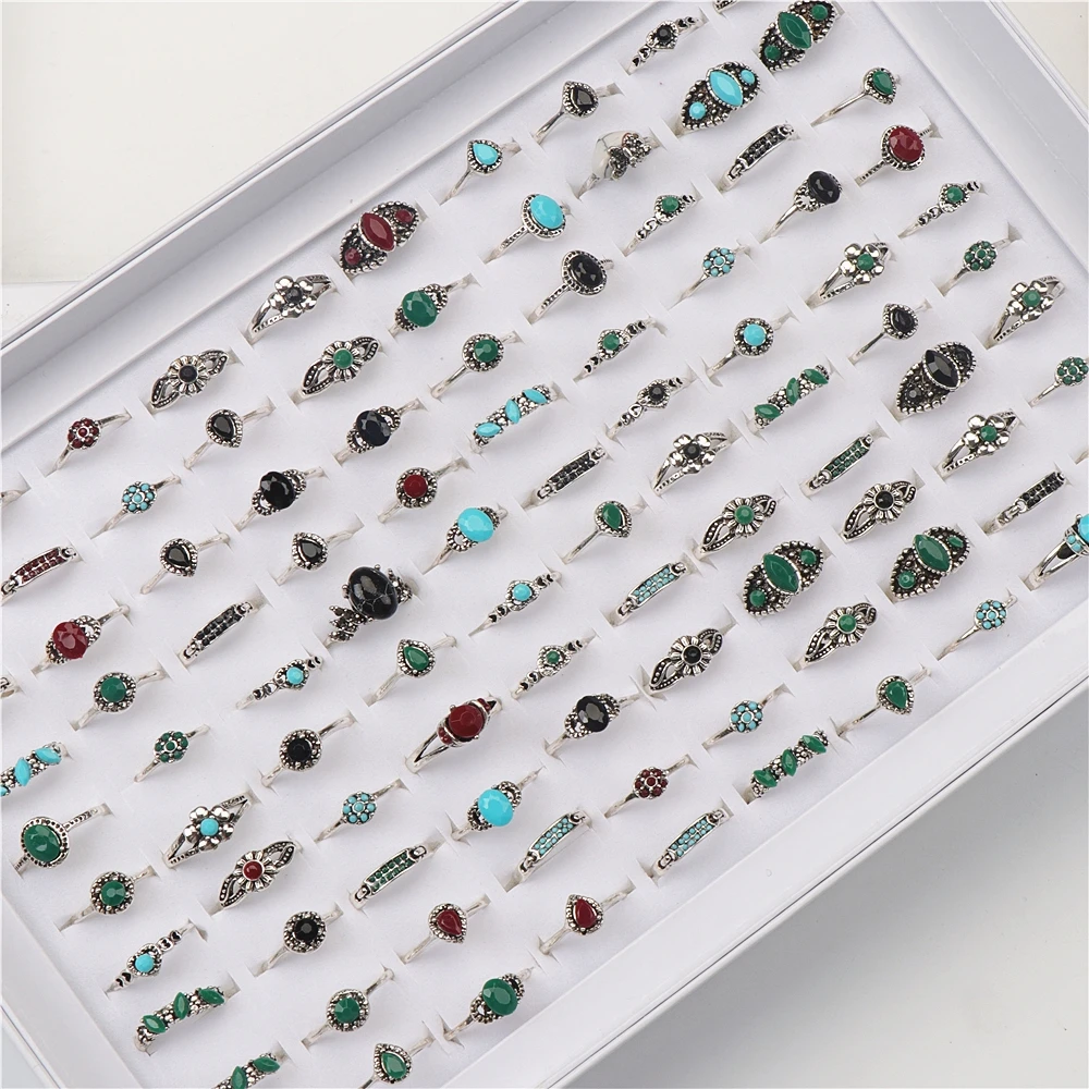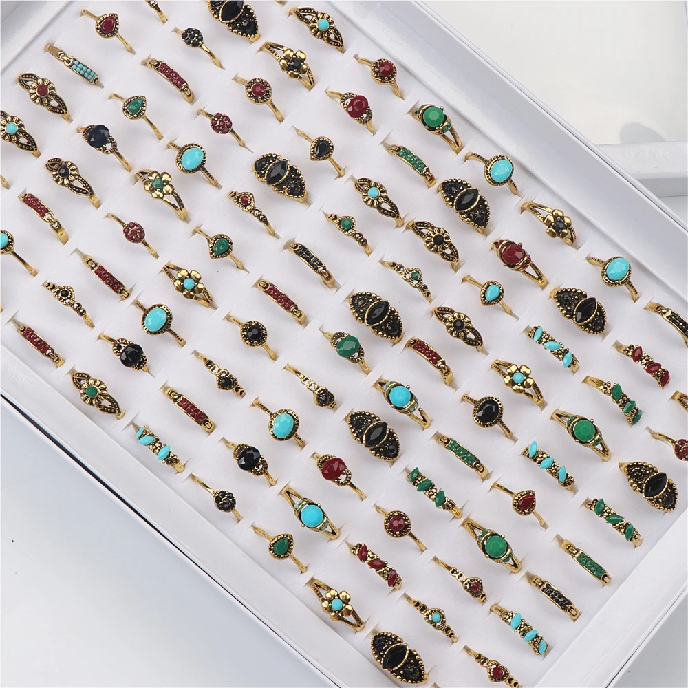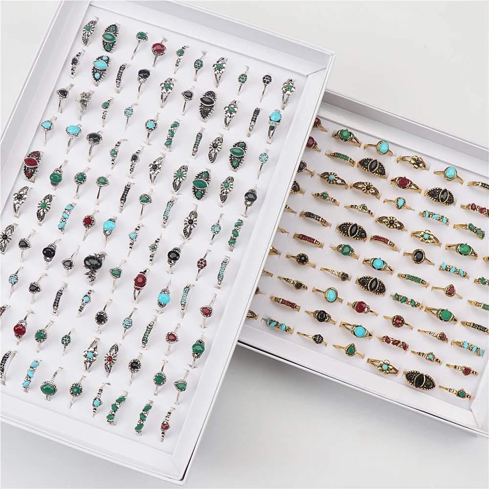 100 шт.лот богемные винтажные Позолоченные посеребренные перстни дл...