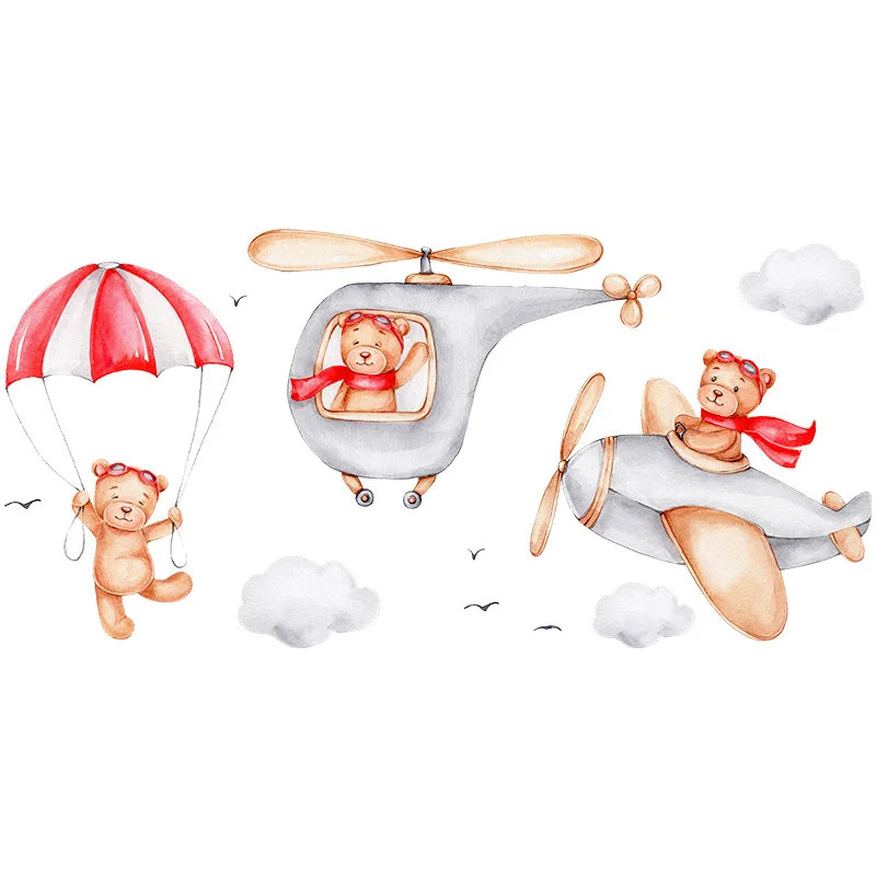 Наклейки на стену в виде медведя, самолета, воздушного шара, украше...