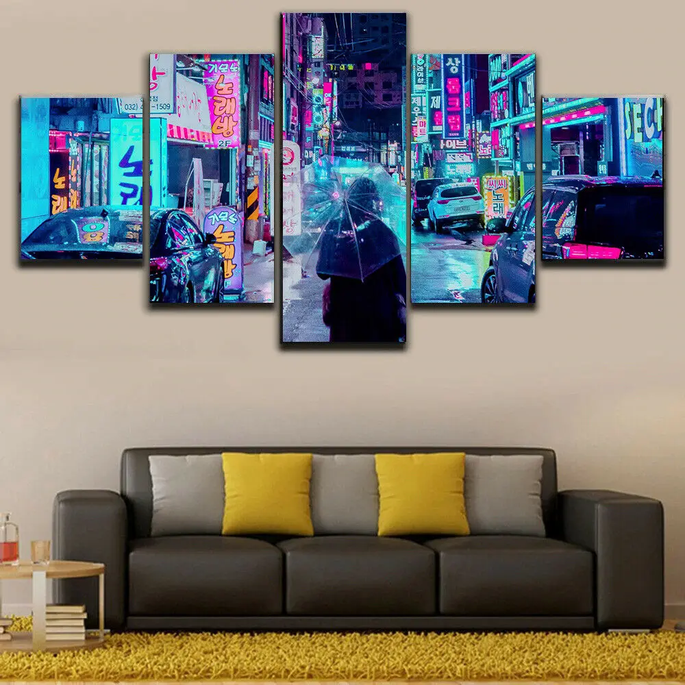 5 шт. холст настенное искусство киберпанк город Корея ночь настенное искусство HD Печать плакаты, постеры живопись гостиная домашний декор картины