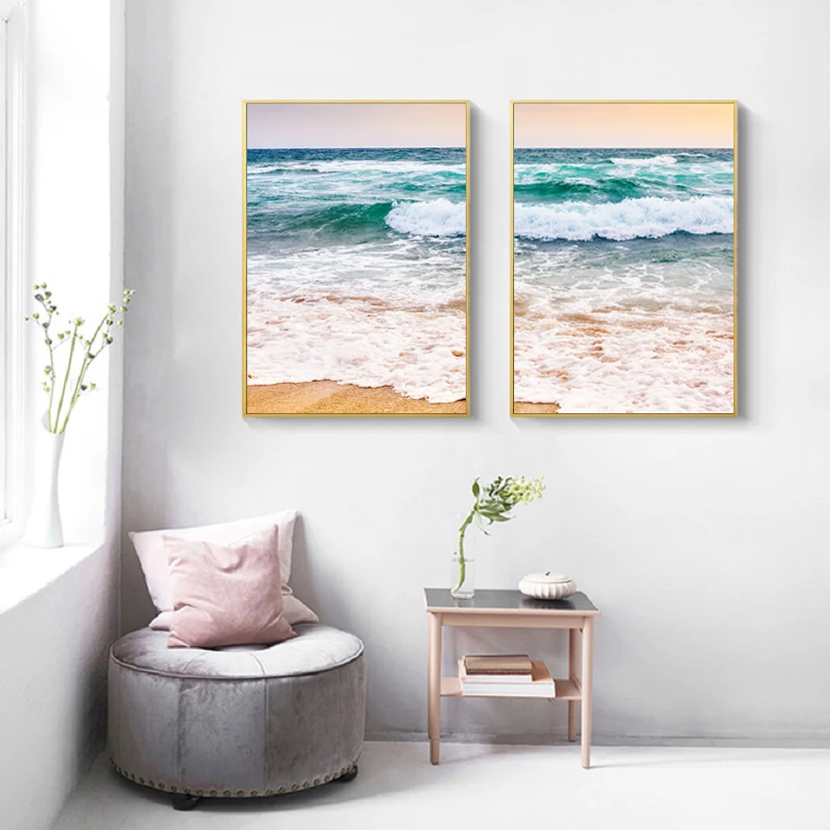 Скандинавский минимализм красивый пляж, волны океана, красота, холст, постер, настенные художественные принты, декор для гостиной