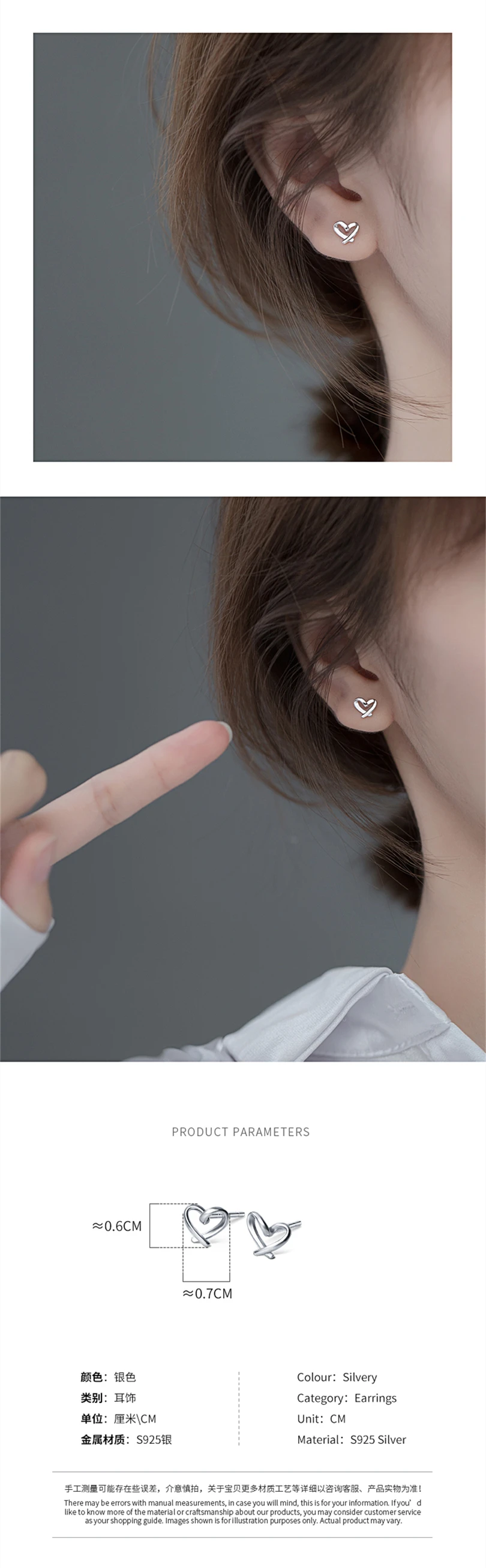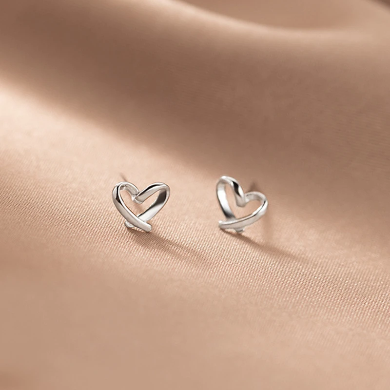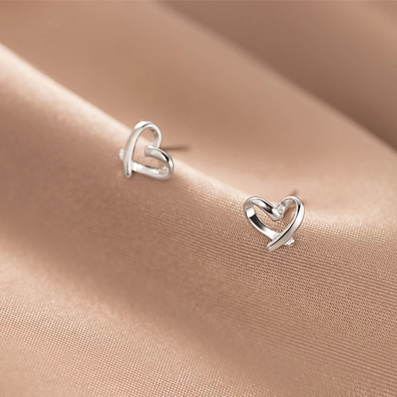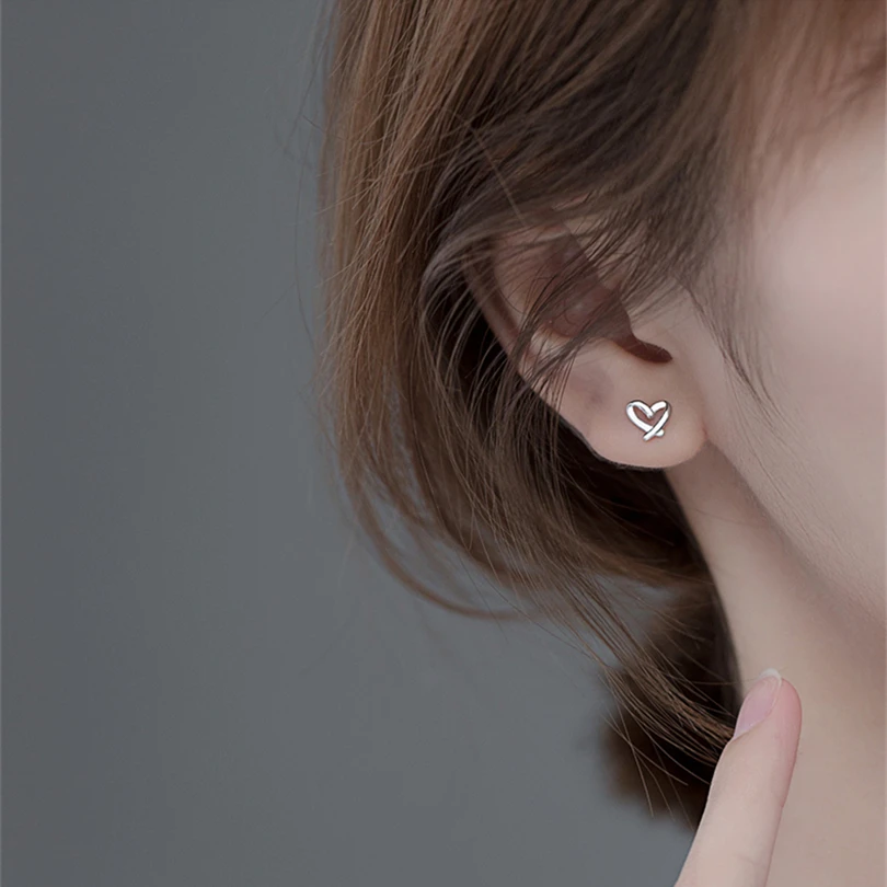 Женские серьги-гвоздики из серебра 925 пробы, с маленьким полым сердцем