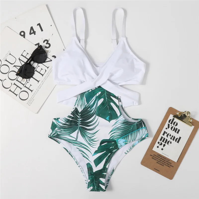 2021 купальники с принтом листьев, Женский облегающий слитный купальник, женское бикини, трикини, Banador Monokini, бикини Badpak Maillot Femme
