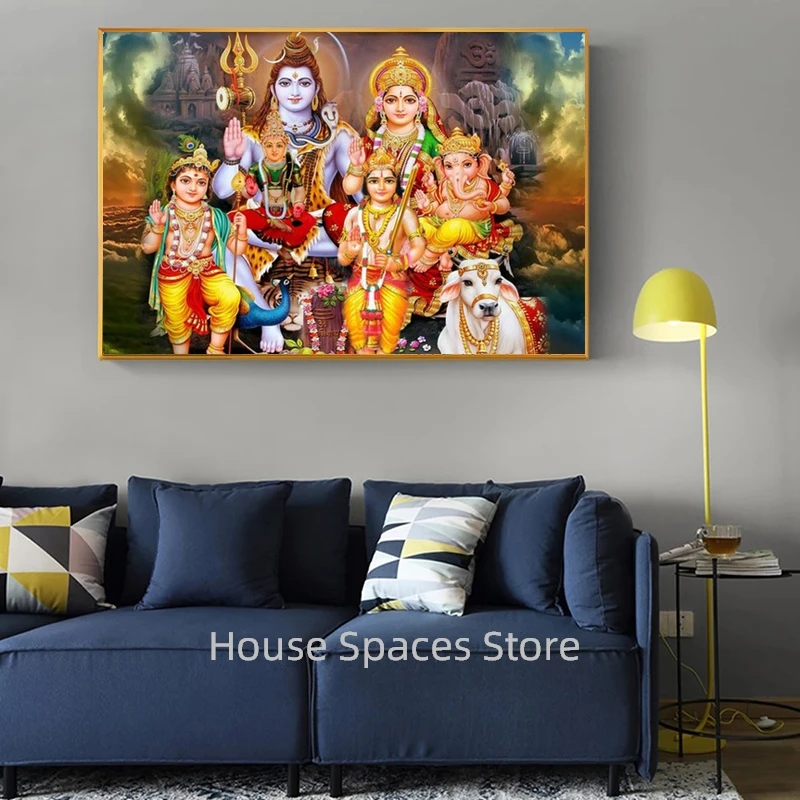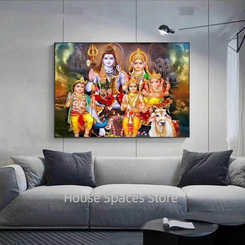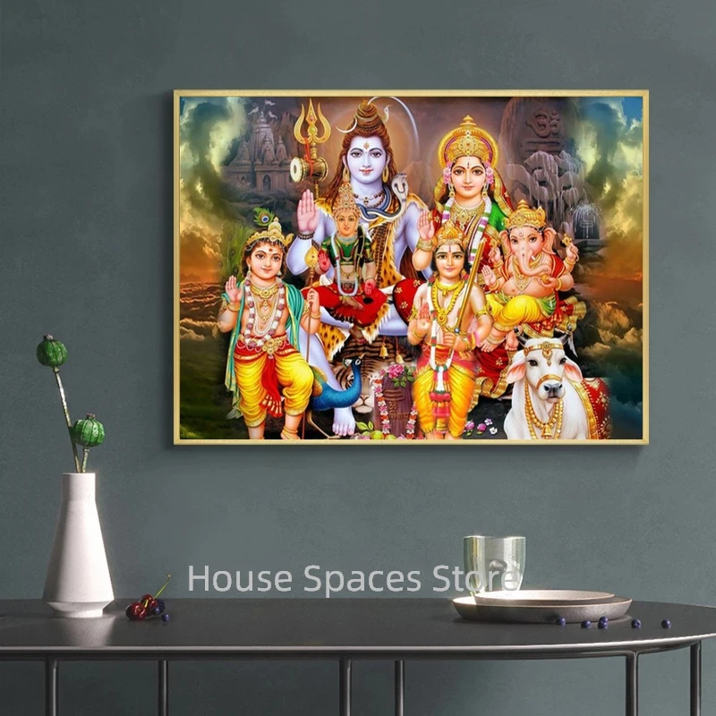 Картина на холсте с изображением индуистского бога, Shiva Parvati Ganesha, индийские плакаты и принты, настенные художественные картины для декора гостиной
