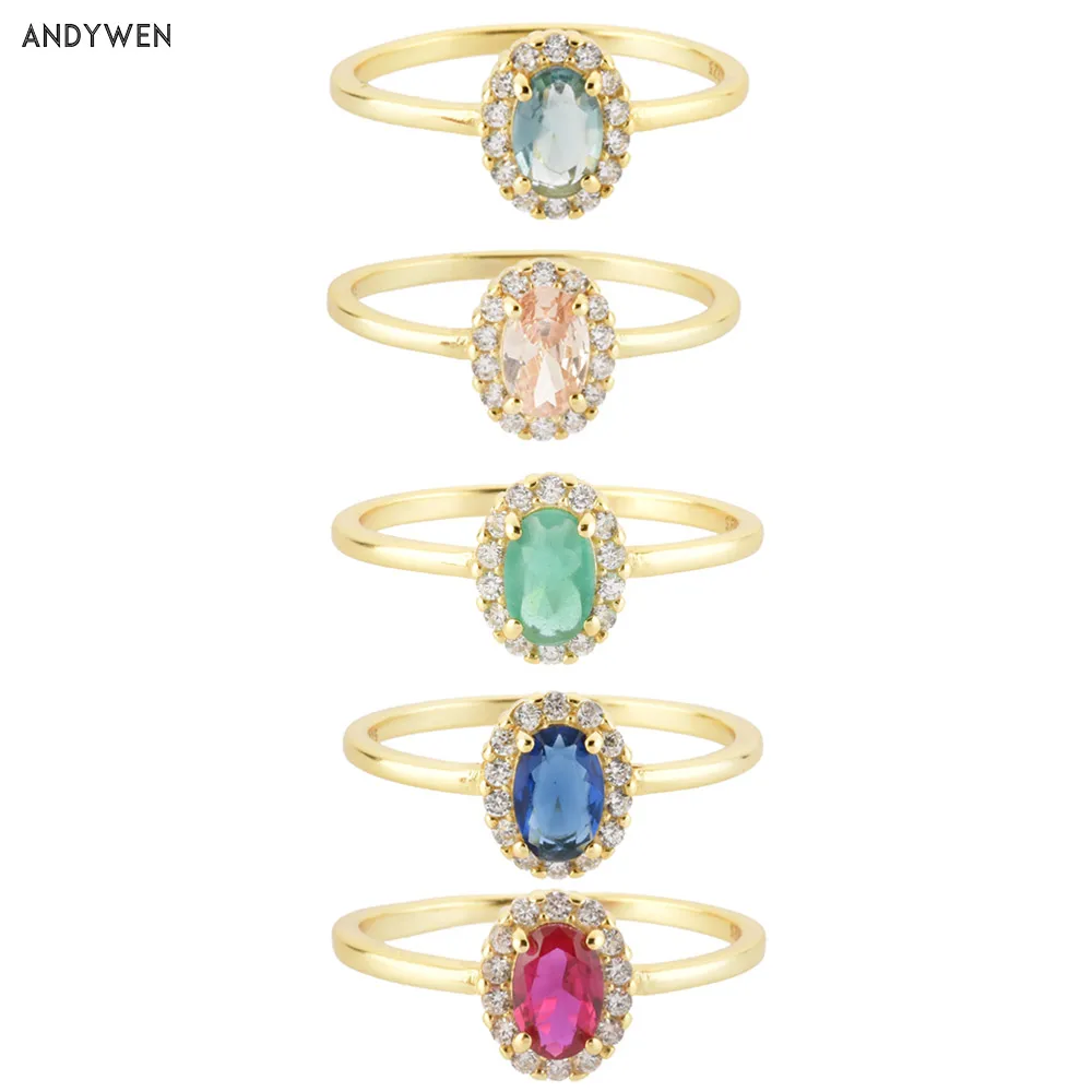 ANDYWEN 100% 925 пробы Серебряный Золотой Anillo Roseton Aguamarina голубой цвет шампанского циркон женские роскошные изысканные ювелирные изделия с кристаллами