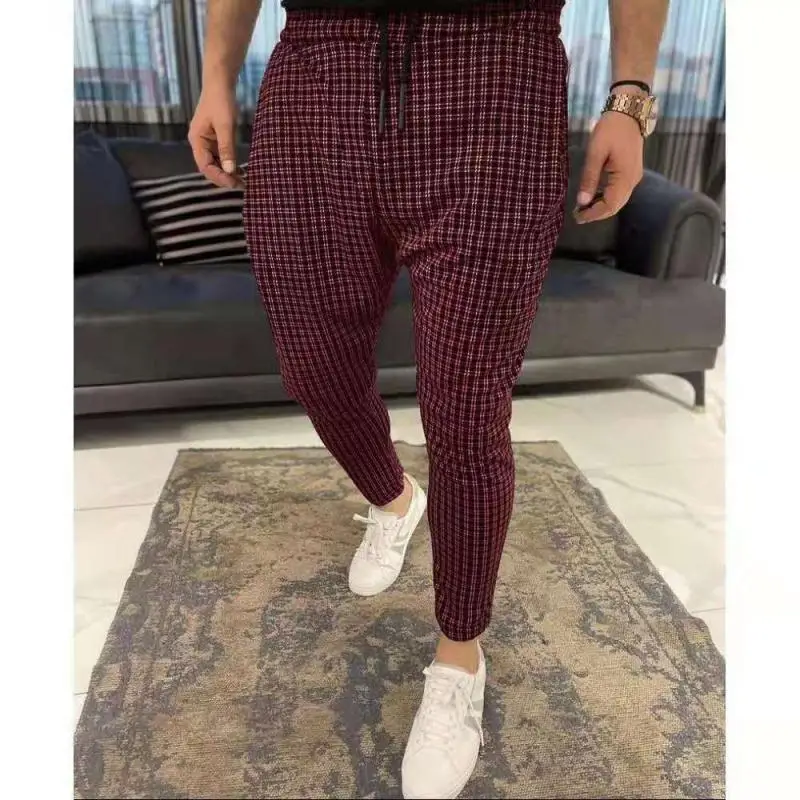 Мужские брюки, повседневные мужские брюки, облегающие Стрейчевые Мужские штаны, мужские брюки, зауженные мужские повседневные брюки, мужские шаровары в клетку, 2021