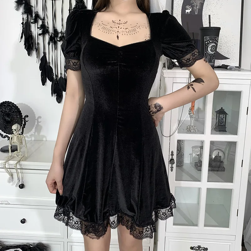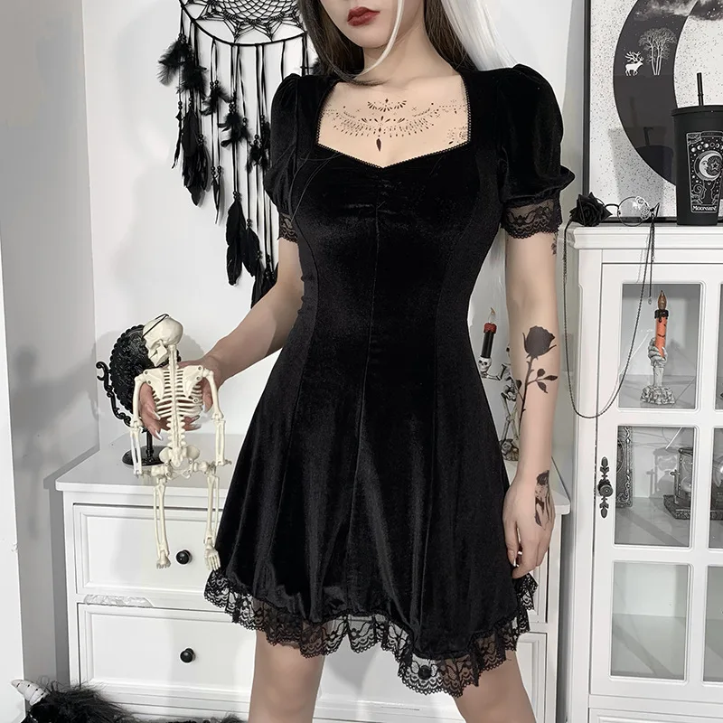 Кружевное готическое мини-платье SISHION VD2120, с квадратным вырез...