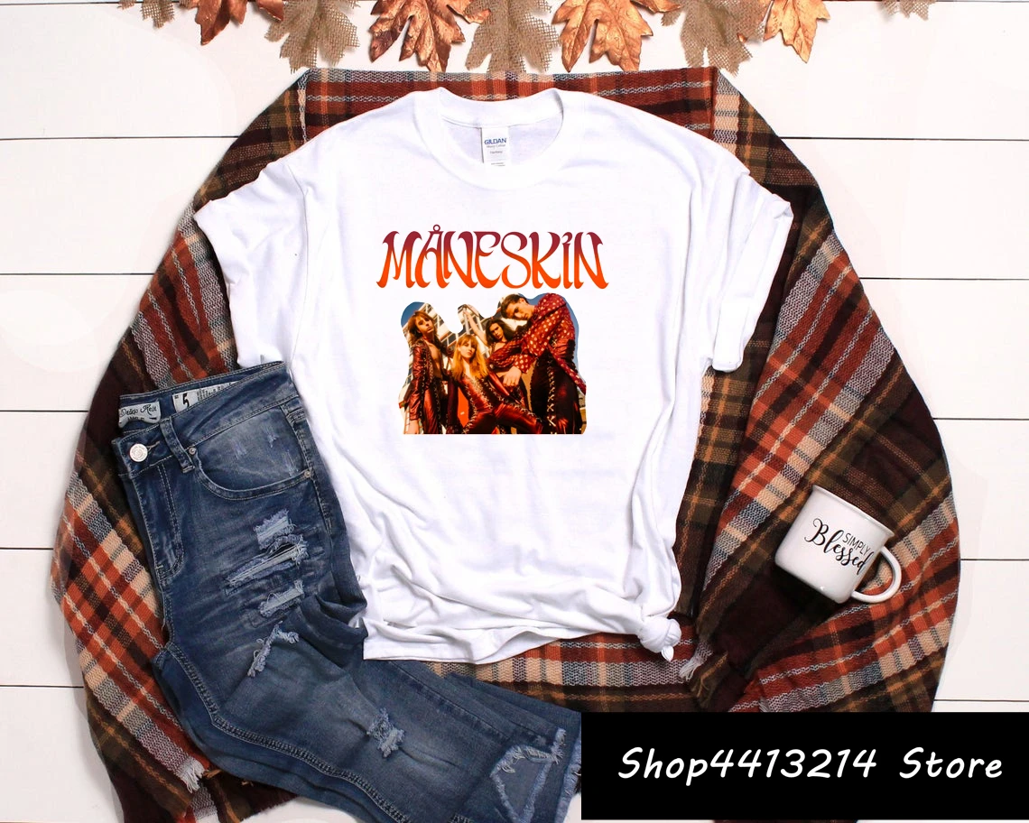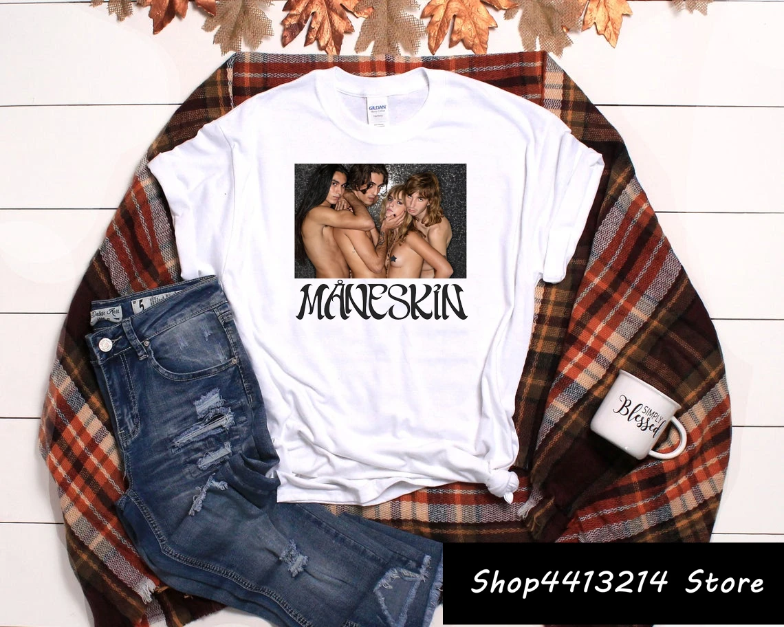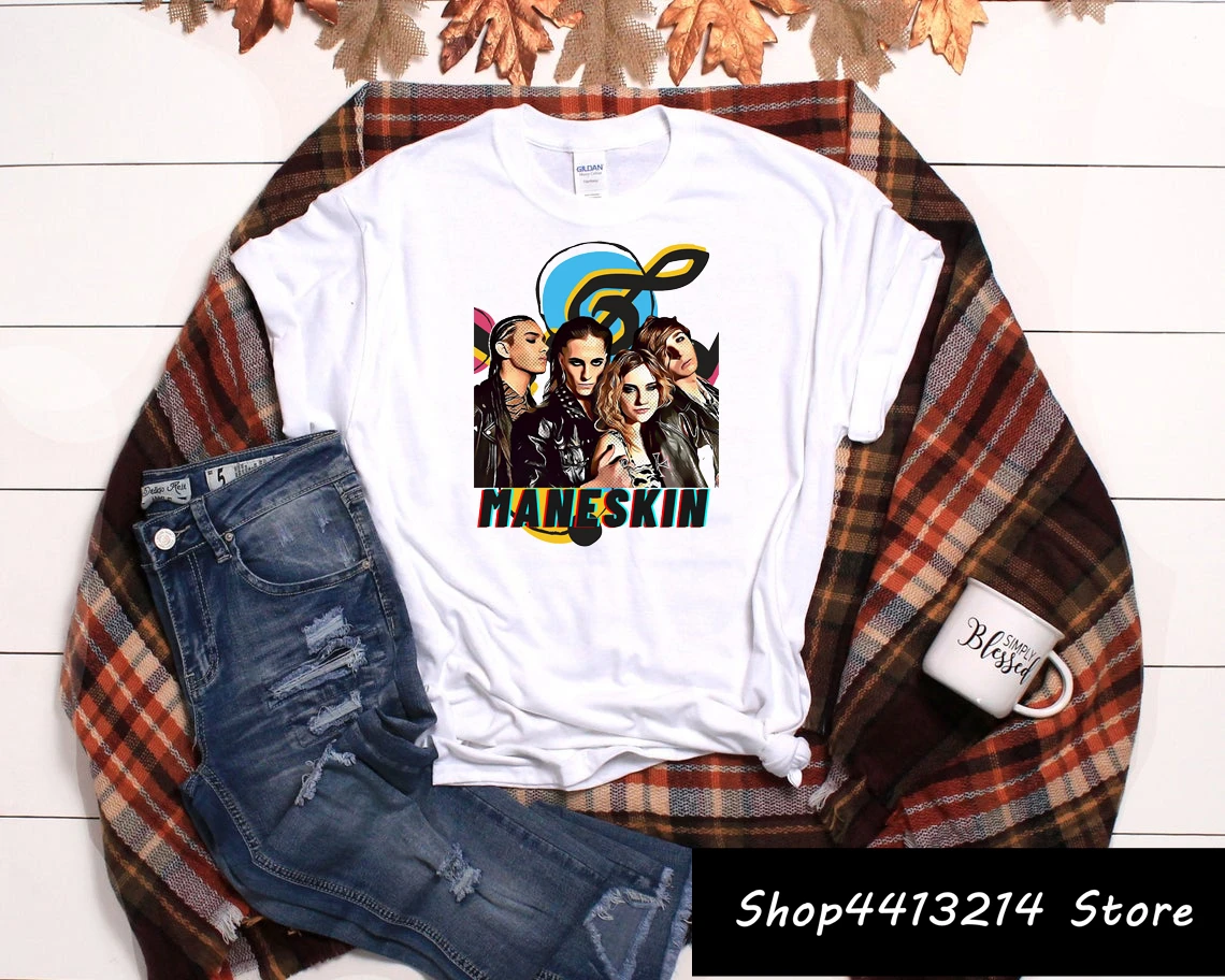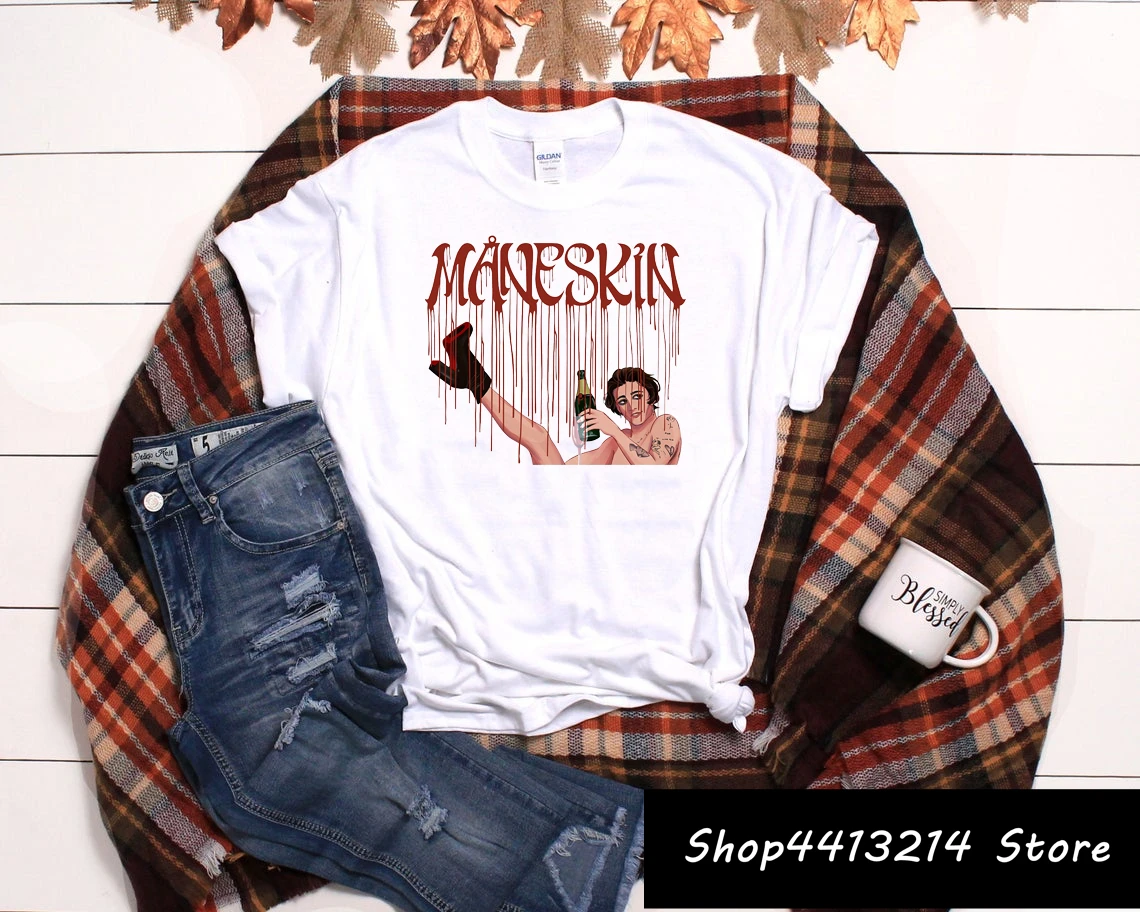 Женская футболка с графическим принтом Maneskin Damiano David Maneskin, Повседневная Уличная одежда в стиле Харадзюку, 2021